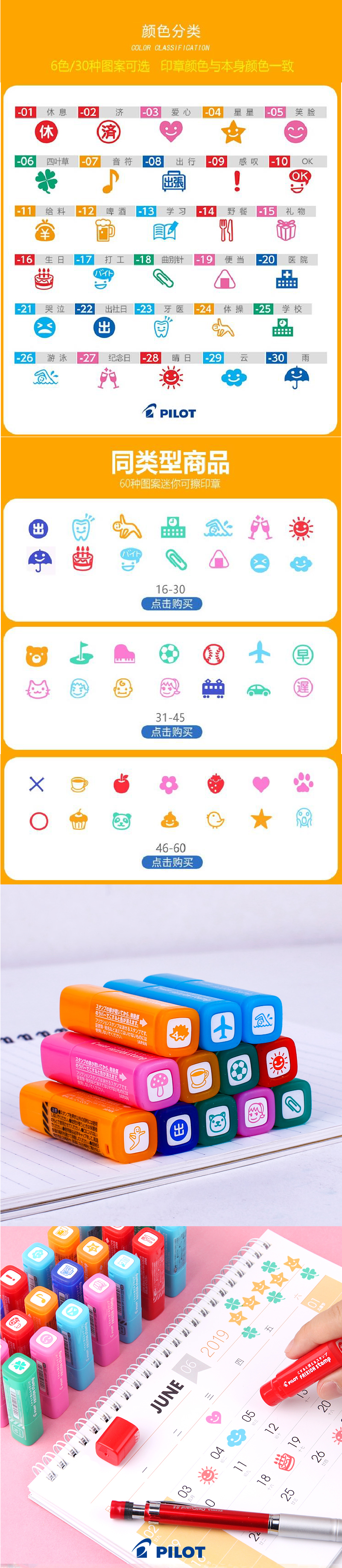 日本PILOT百乐可擦印章迷你可爱印章手帐装饰印章-当即限定款