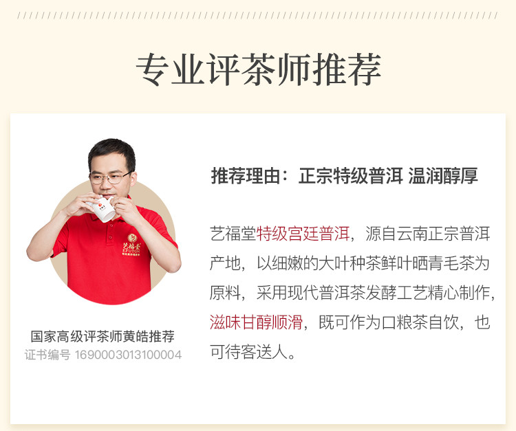 “艺福堂茶业”创立于2008年,是一家集生产、销售、科研为一体的现代茶业企业,主打西湖龙井,兼营世界各地名优茗茶及花草茶,是中国茶行业为数不多的年销售额过5亿的品牌之一,是杭州亚运会官方指定用茶!