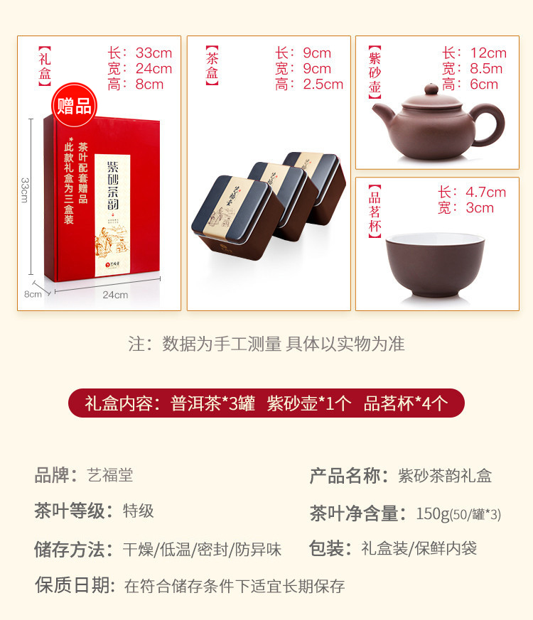 艺福堂宫廷普洱茶紫砂茶韵礼盒150克/盒