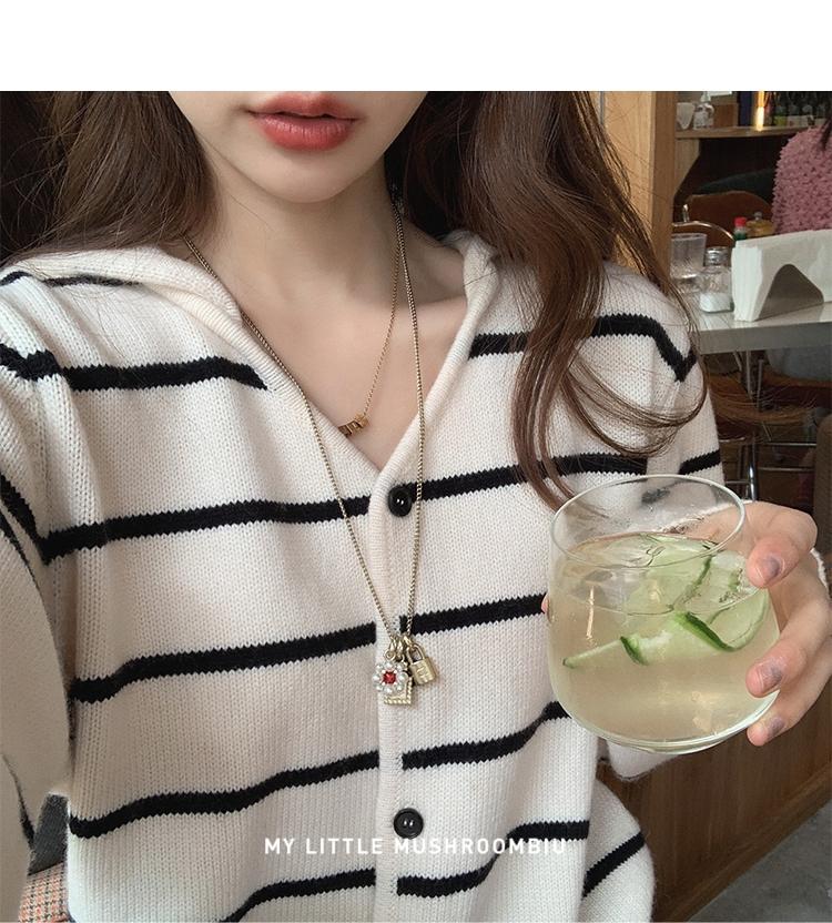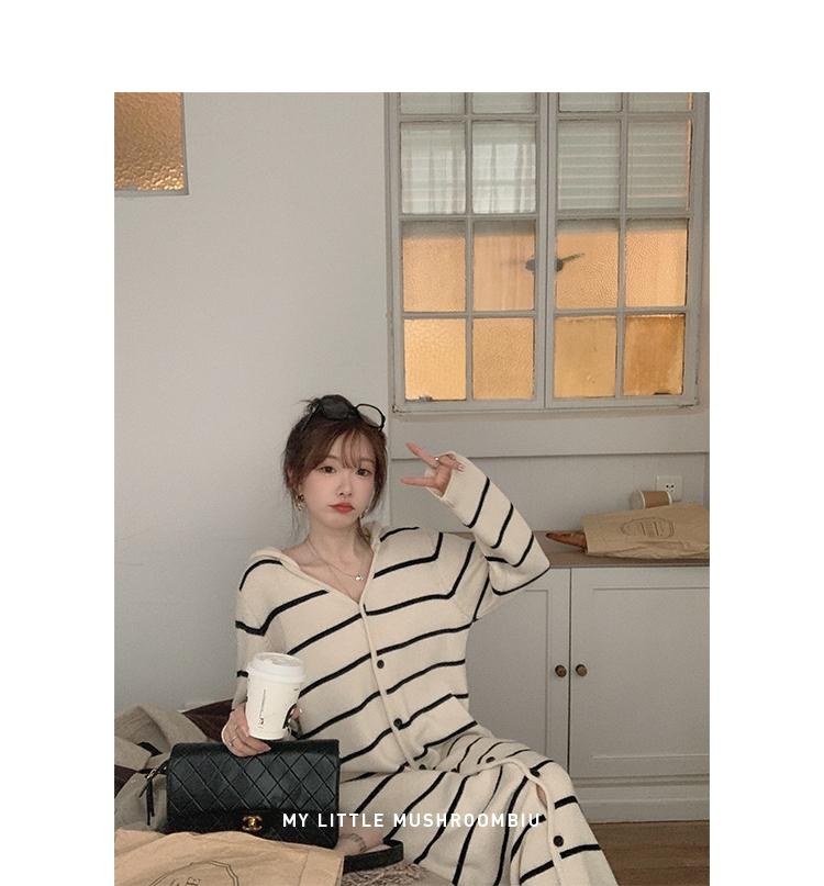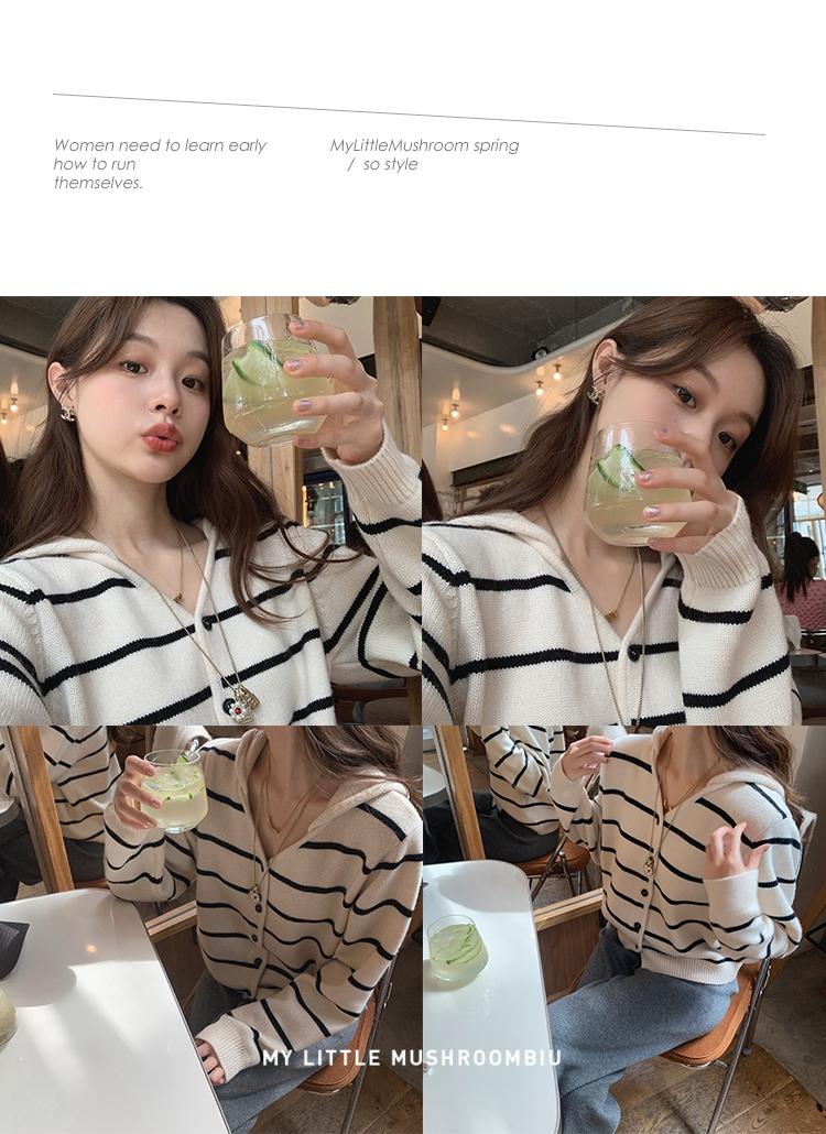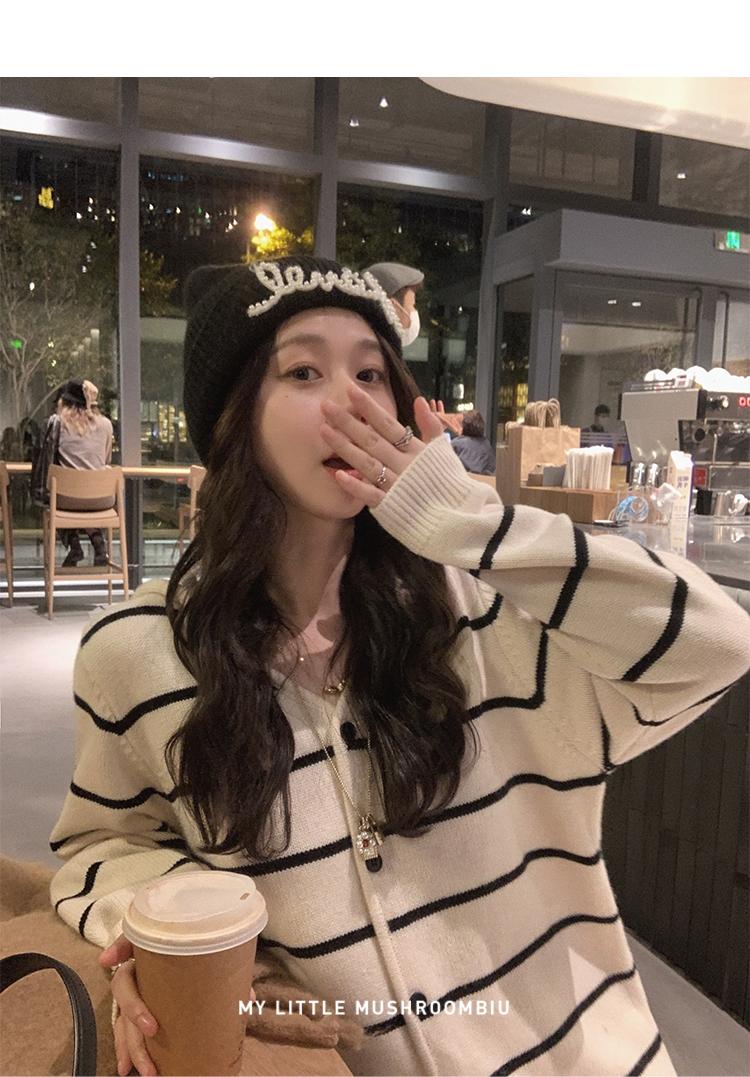 白底黑条M码 金蘑菇菇 甜蜜冬日 日杂条纹 / 松弛休闲感 冬日搭配风格感长袖