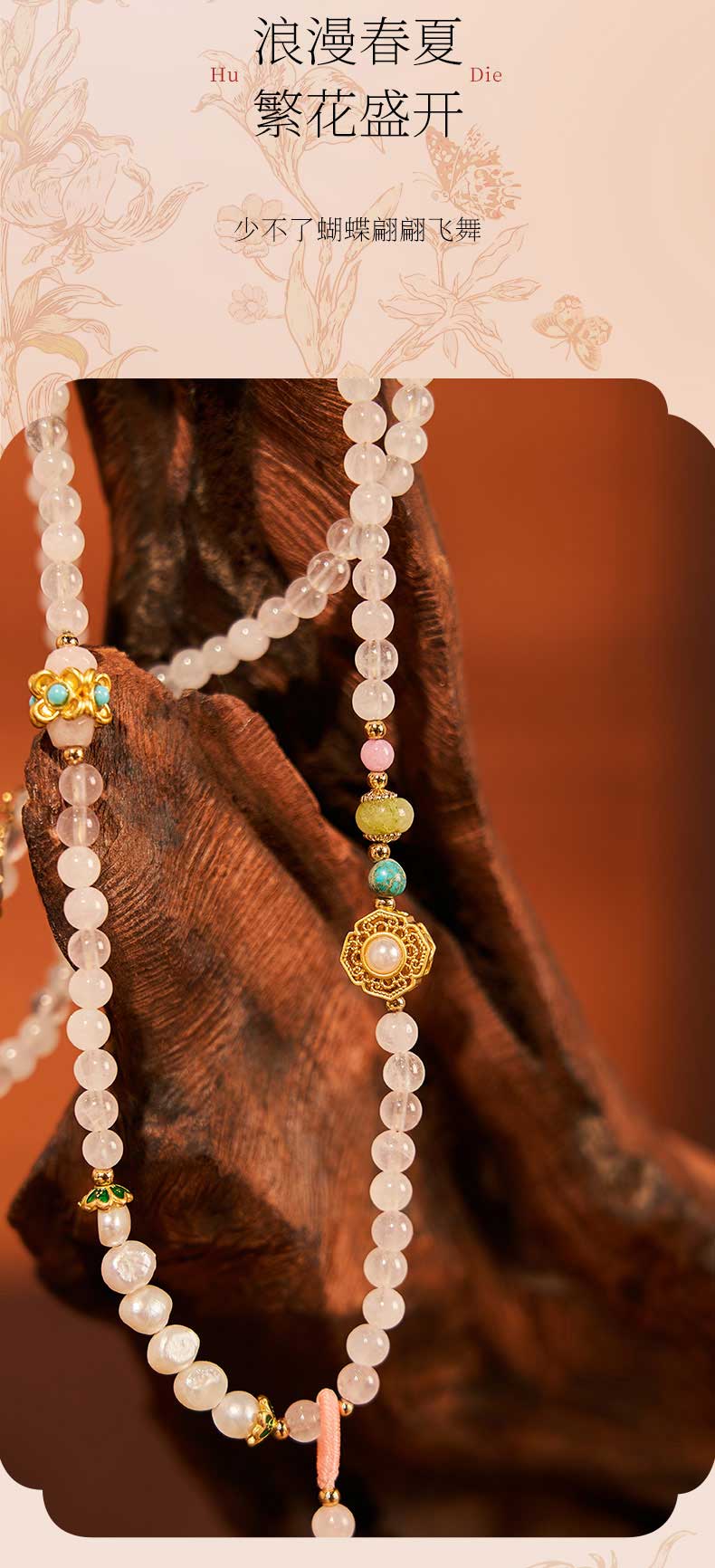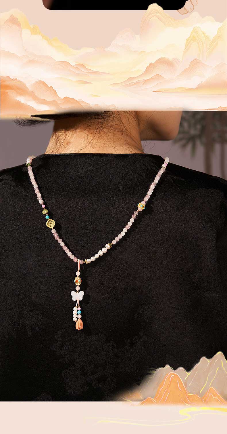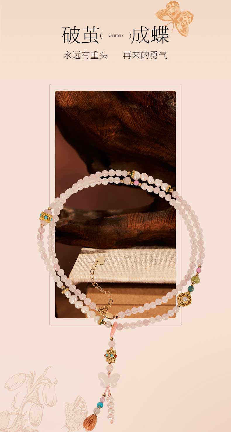 大英博物馆 东方梦境系列 粉晶 蝴蝶如梦 项链 多功能 长链 手链 手串 装饰链