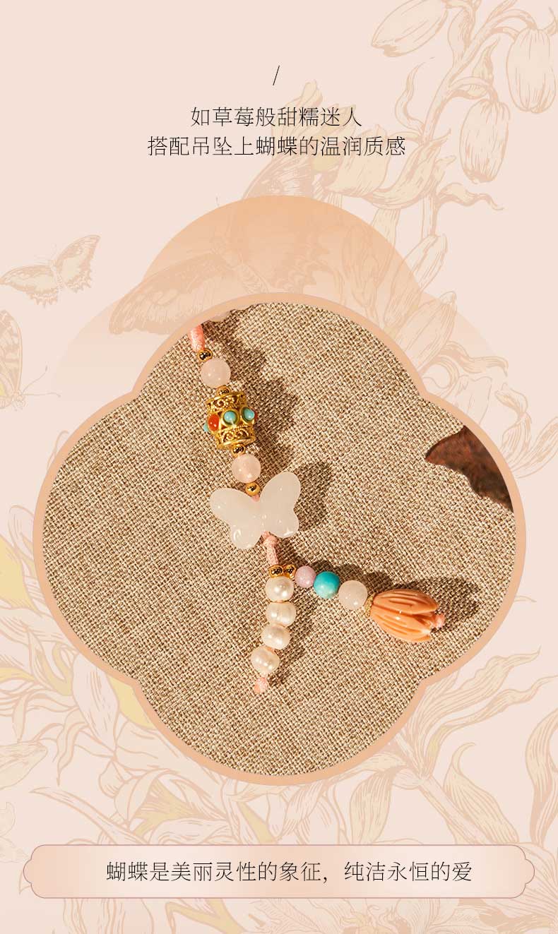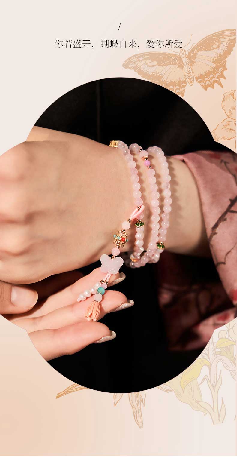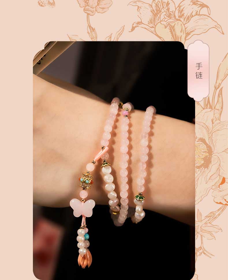 大英博物馆 东方梦境系列 粉晶 蝴蝶如梦 项链 多功能 长链 手链 手串 装饰链