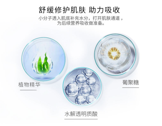 1.含透明质酸钠保湿成分,深层补充皮肤水分,令皮肤更水润紧致,使肌肤光滑细嫩;