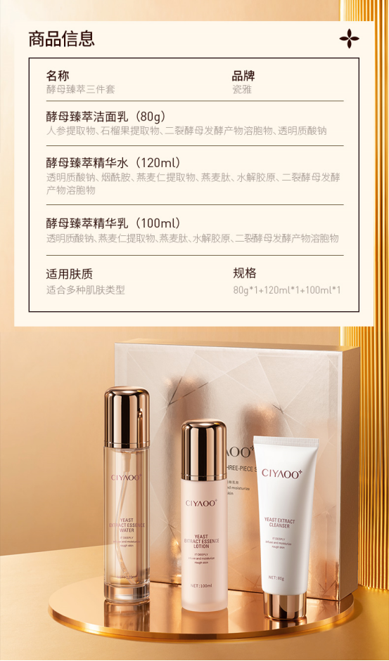 【品名】瓷雅酵母臻萃三件套