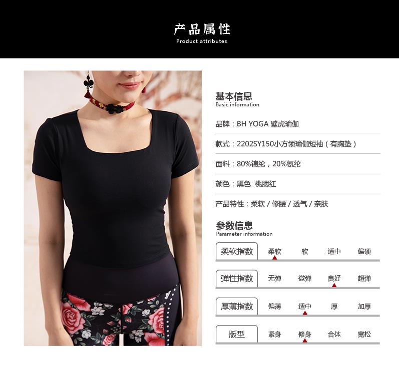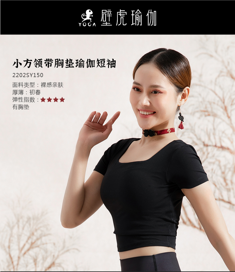 壁虎瑜伽【2202SY150】小方领瑜伽短袖(有胸垫)【七十二小时发货】