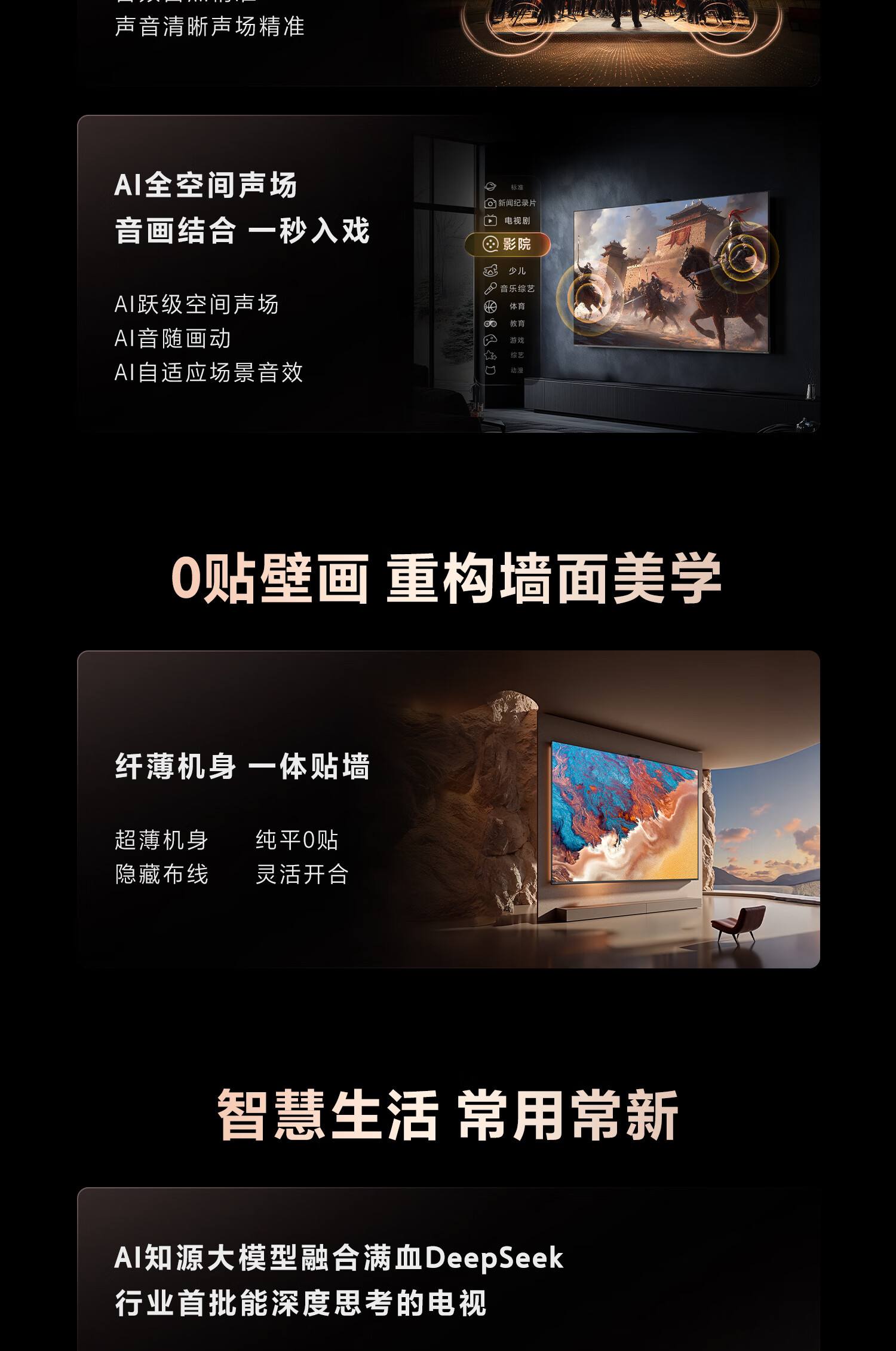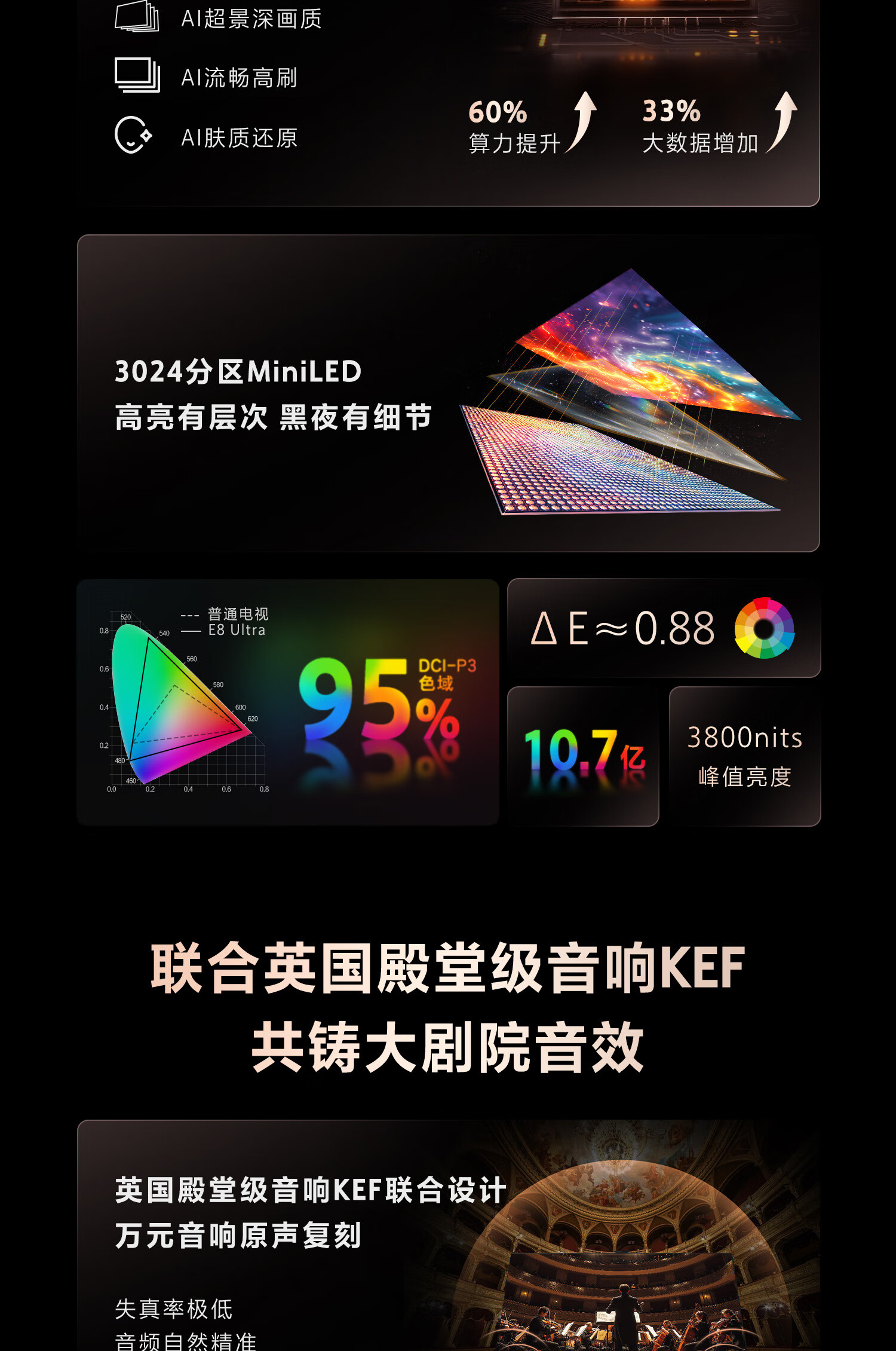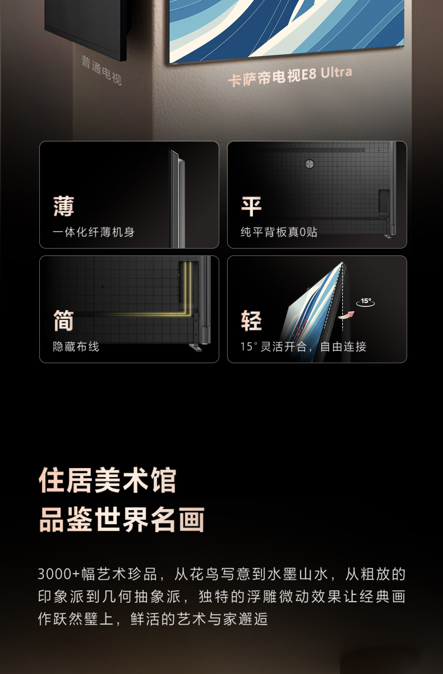 卡萨帝(Casarte)揽光壁画电视K85E8 Ultra 85英寸黑晶屏Ultra 330Hz高刷纯平0贴壁纸艺术3024分区MiniLED 国家补贴