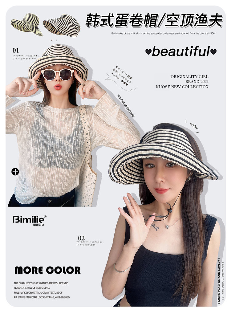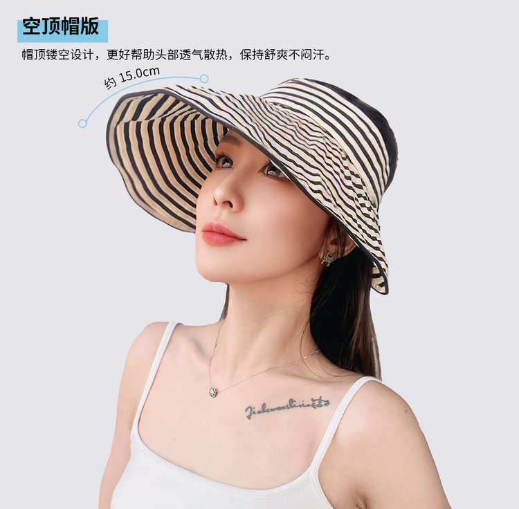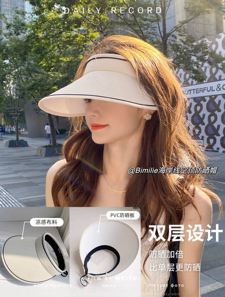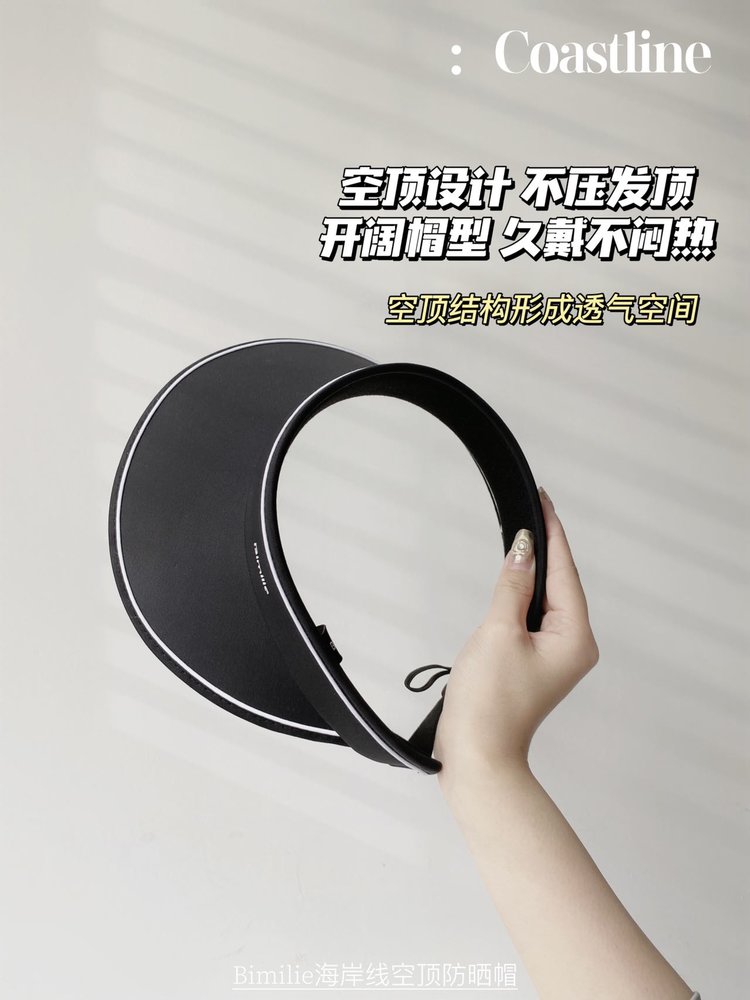 空顶帽型帮助头皮透气散热,防晒不闷的同时,不压头发,脱帽不易散发、乱发