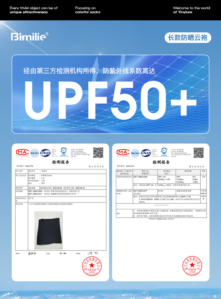 UPF50+高倍防晒,可阻隔99%的紫外线