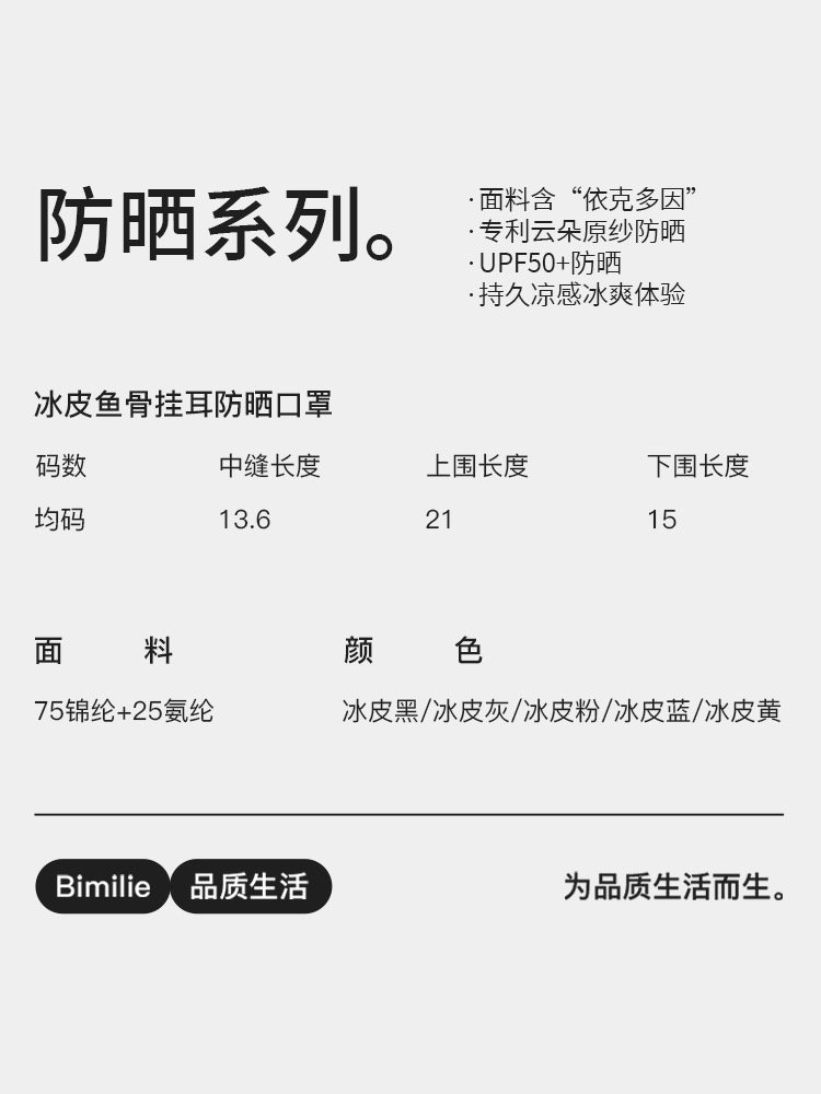 Bimilie保湿挂耳冰皮鱼骨防晒口罩