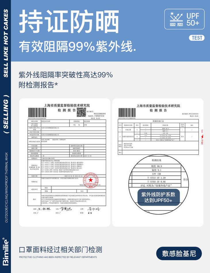 ✅原纱防晒UPF50+,可反复水洗,效果不减