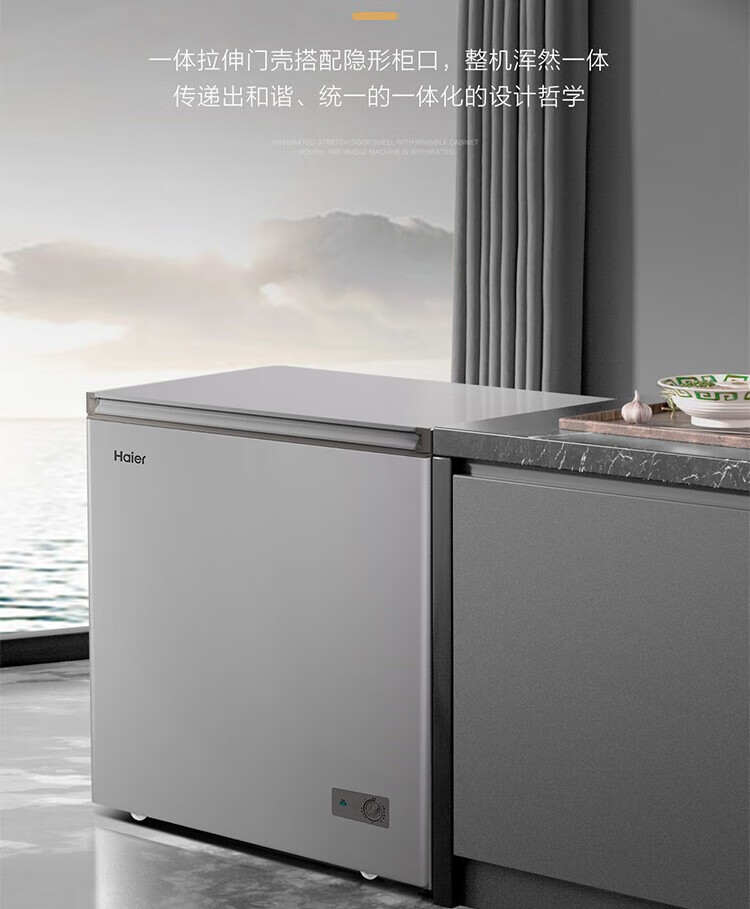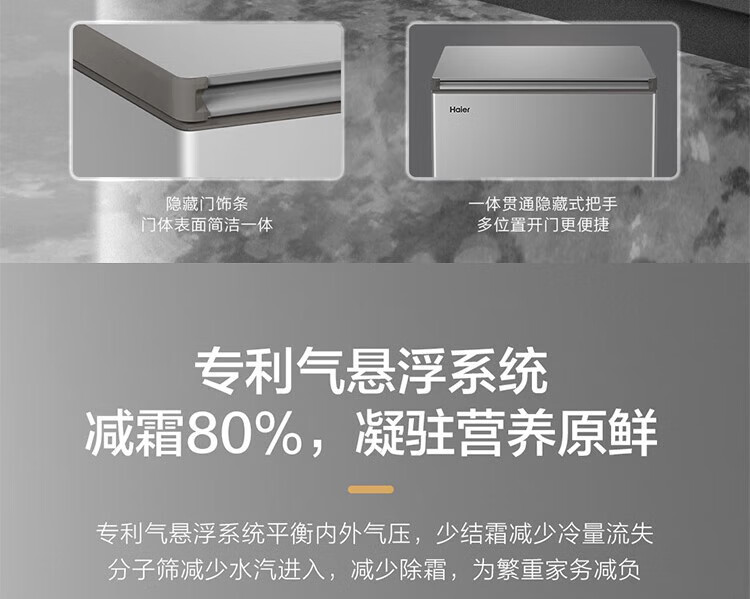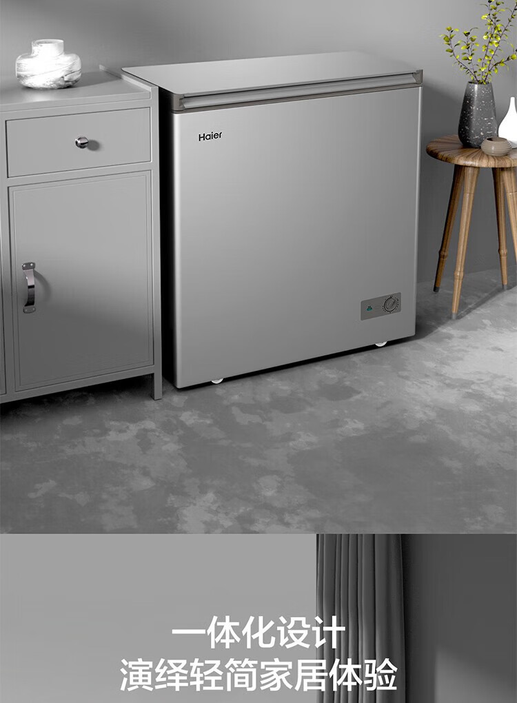 海尔海尔减霜80%冰柜 一级能效 100升 家用商用冷柜 小型冷冻柜 节能静音 速冻保鲜冷藏两天不到1度电 灰色BC/BD-100GHPCZ