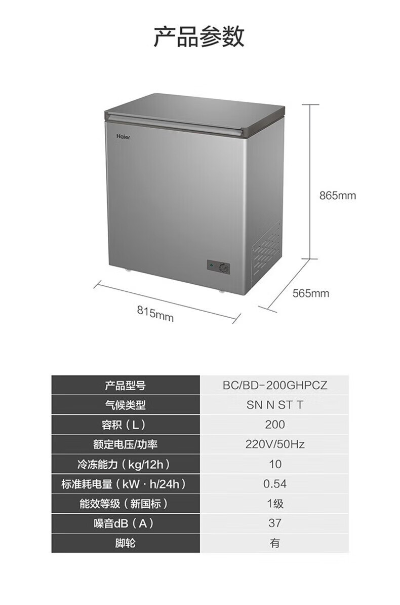 以下详情页为200L冰柜,仅供参考。