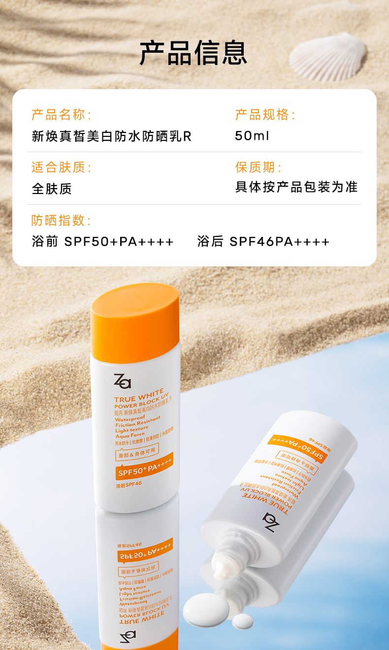 【美宅专属】Za姬芮 新焕真皙美白防水防晒乳 50ml