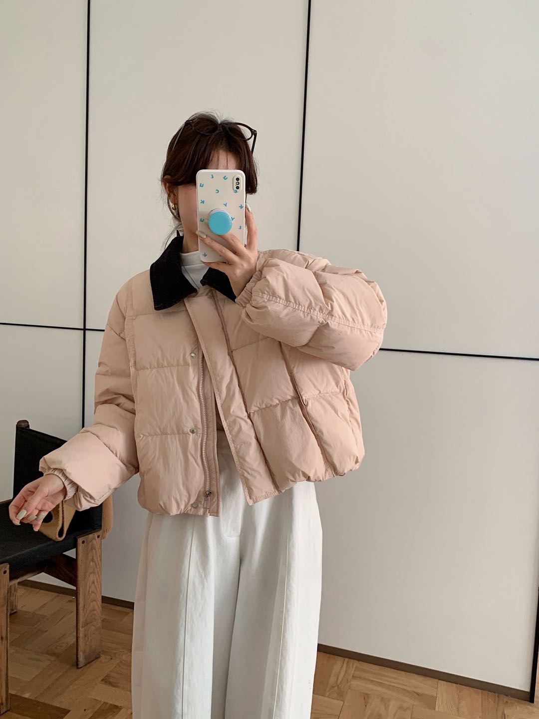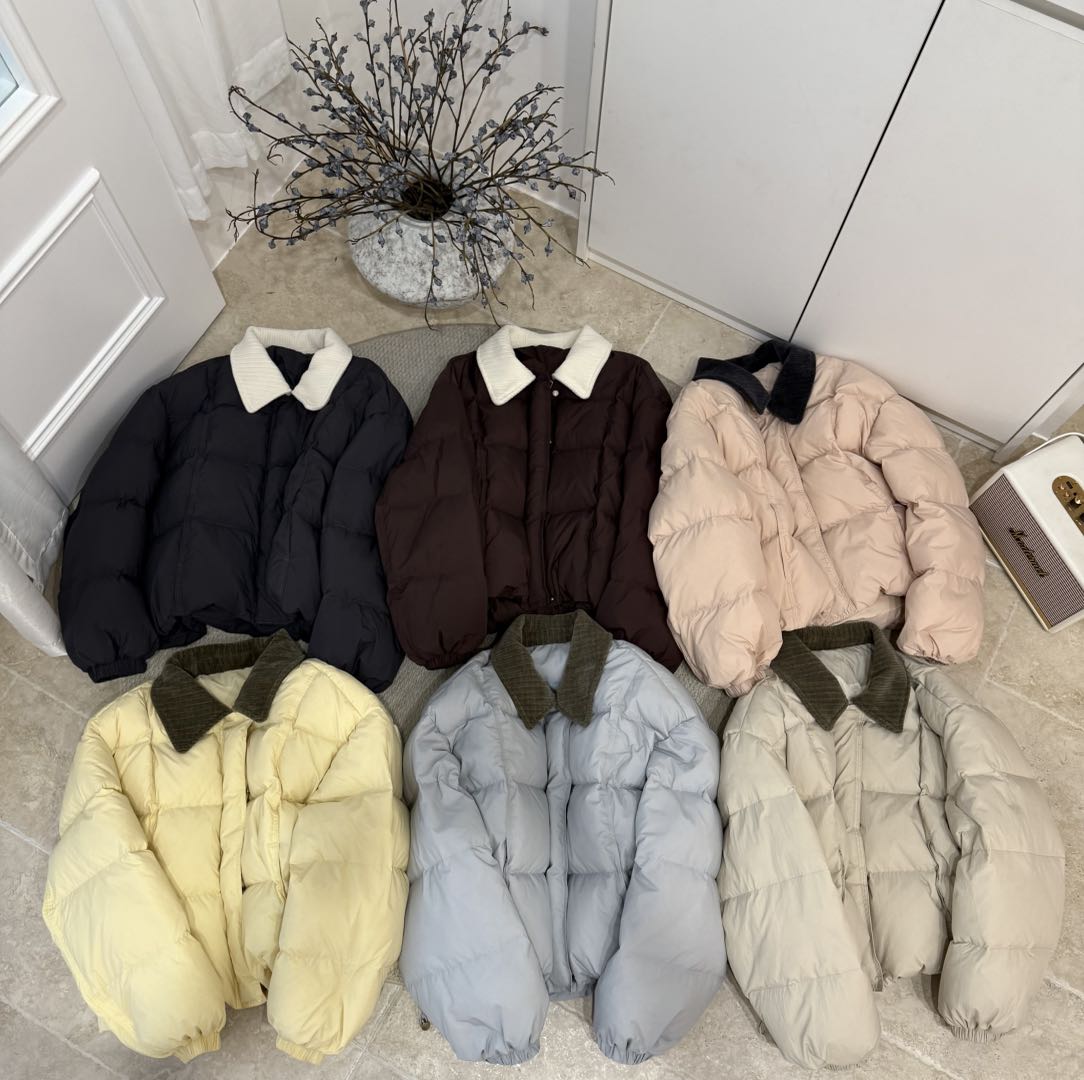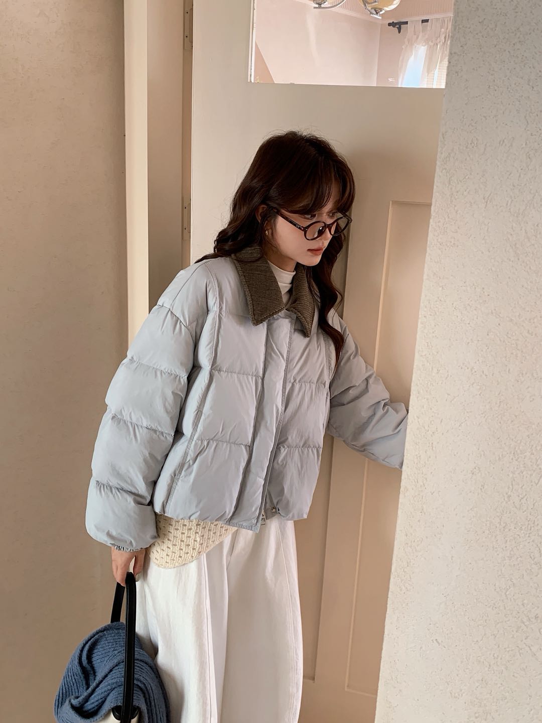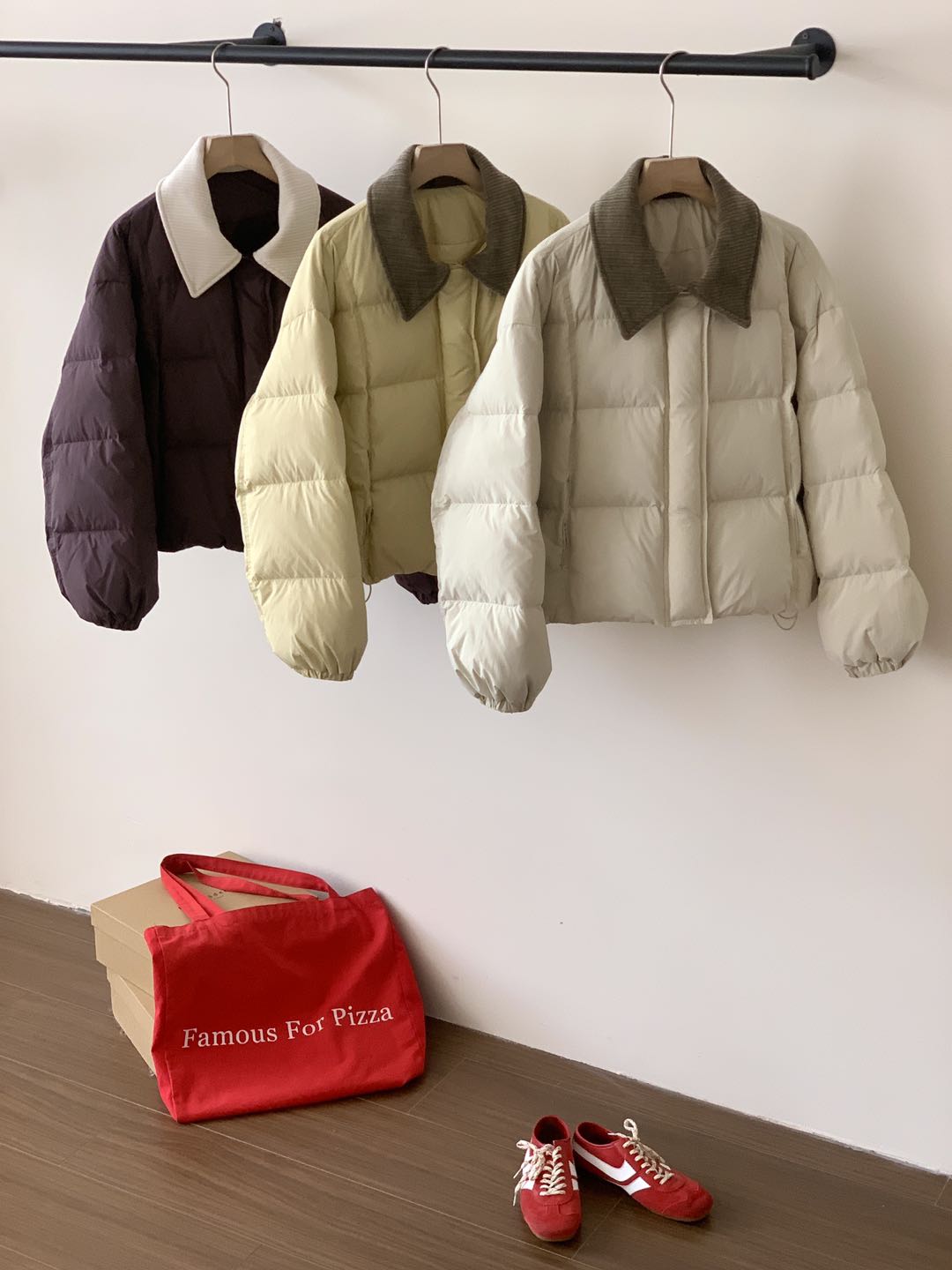 【YW】无忧购韩系白鸭绒灯芯绒领羽绒服女短款甜美小个子面包服25021(截单后7天发货)