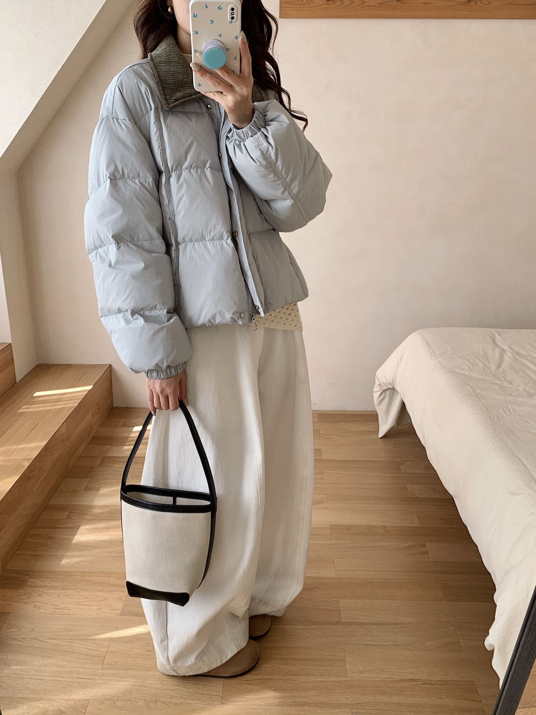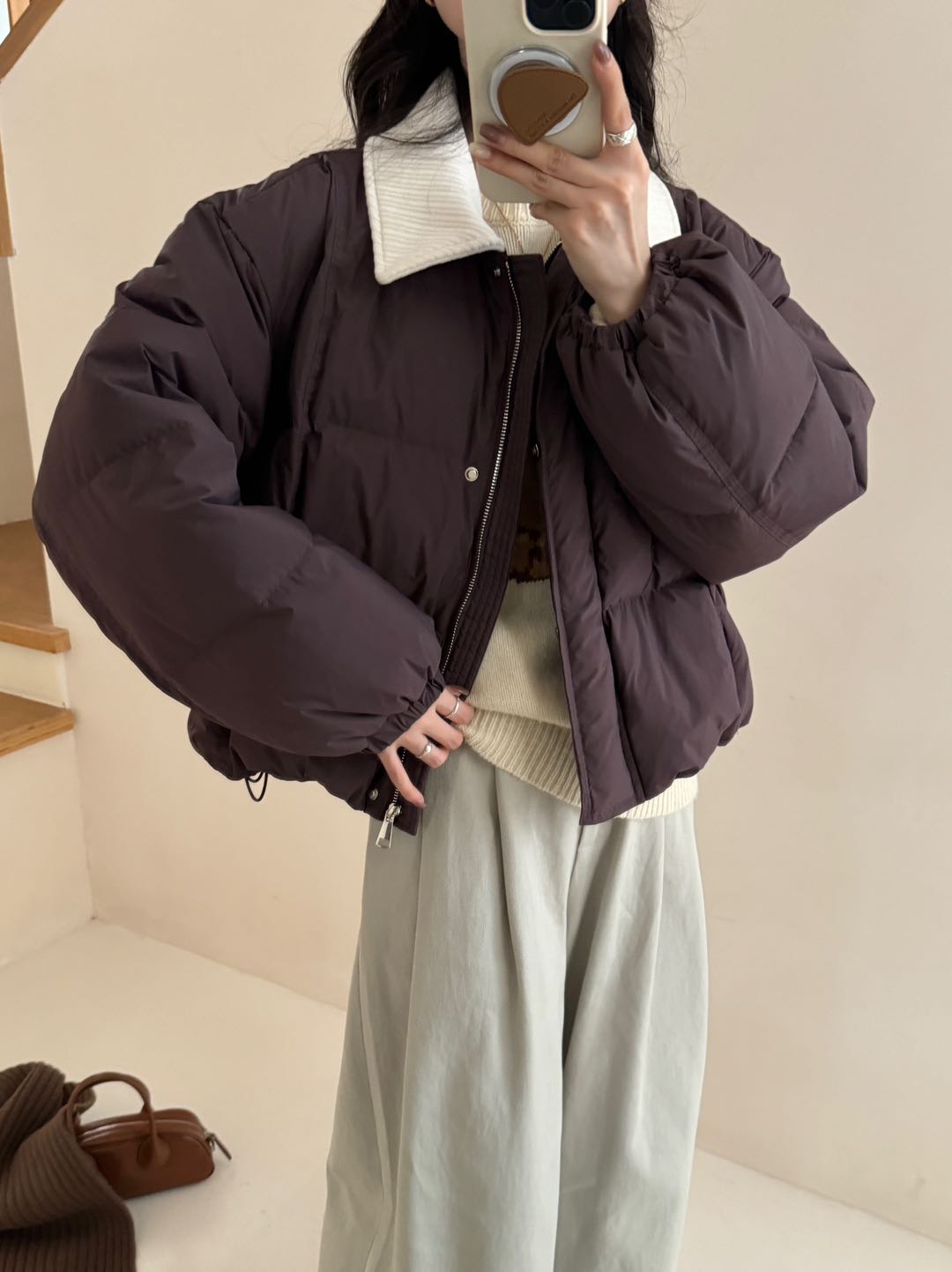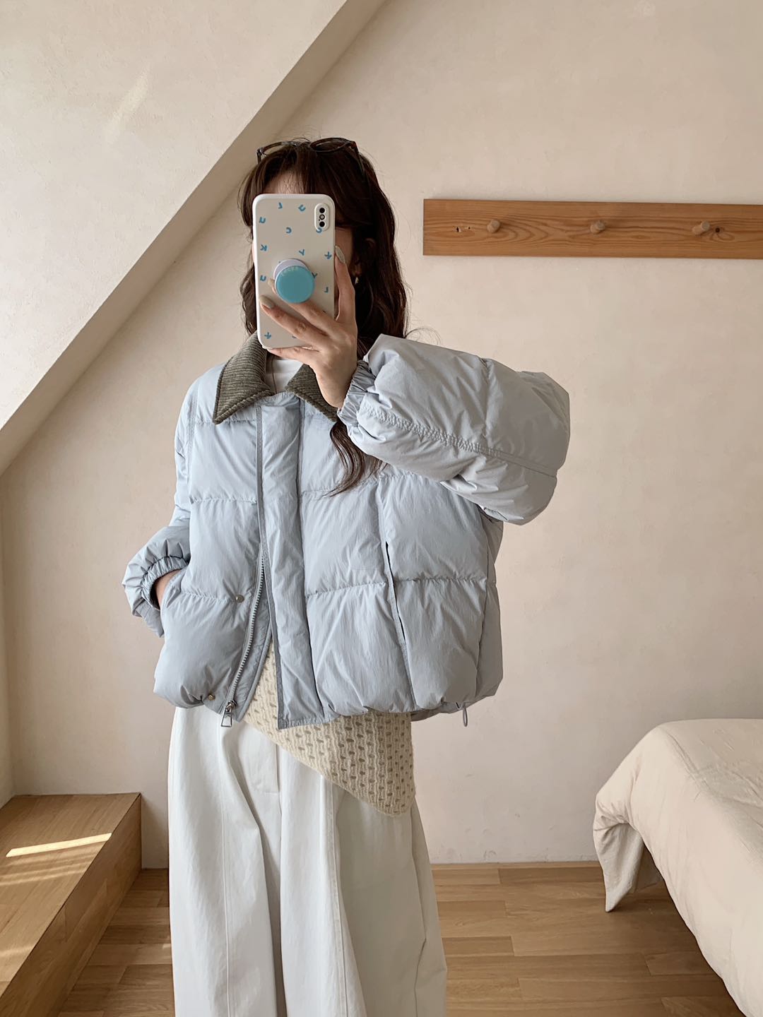 【YW】无忧购韩系白鸭绒灯芯绒领羽绒服女短款甜美小个子面包服25021(截单后7天发货)