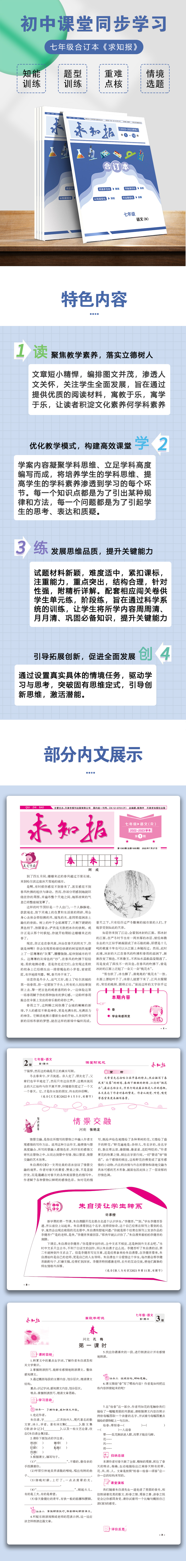 七年级上册《求知报合订本》语数英生地5个学科,每科2本,合计10本合订本。