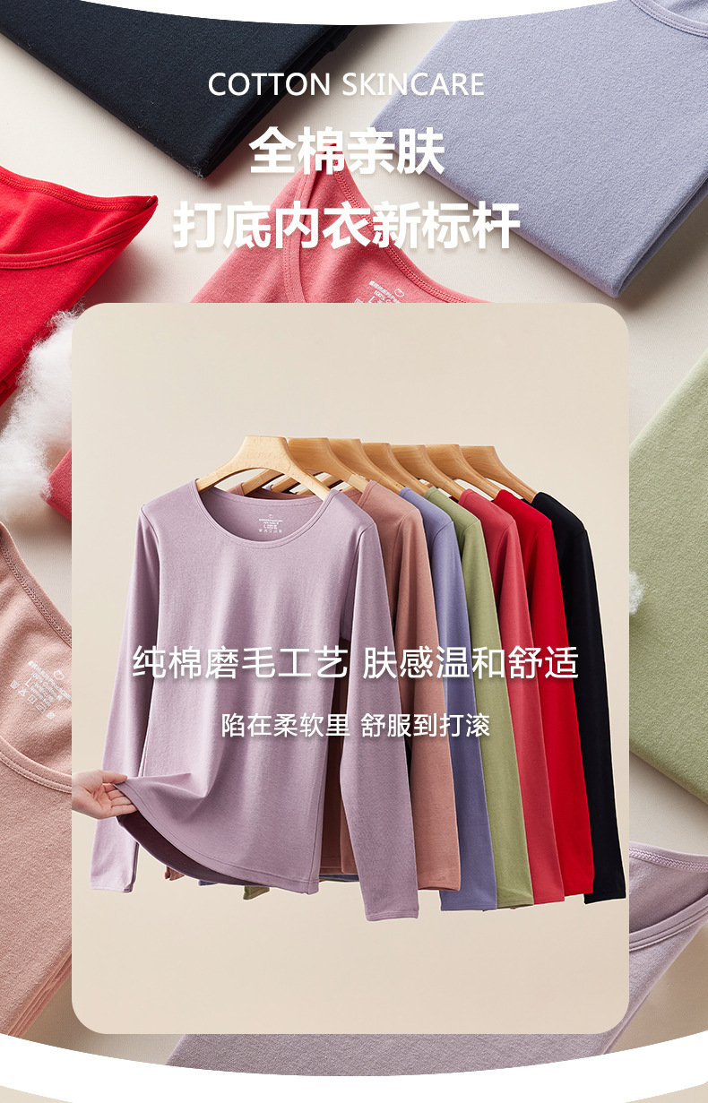 【瑜伽生活家】「7色可选!纯棉磨毛款」俞兆林女士纯棉打底秋衣秋裤全棉女舒适透气冬季薄款保暖内衣套装