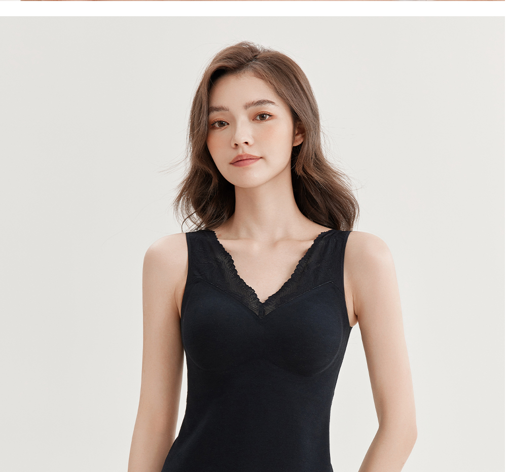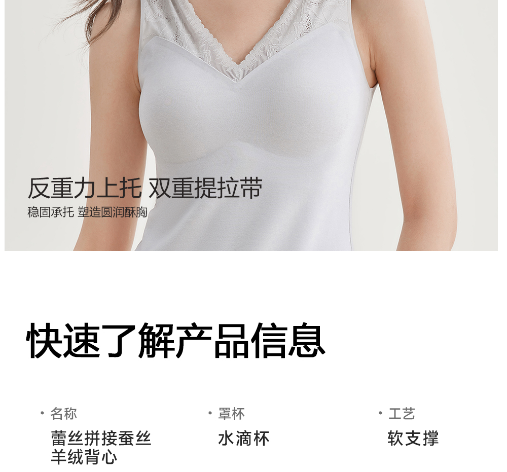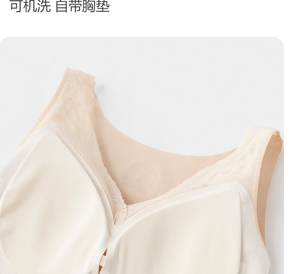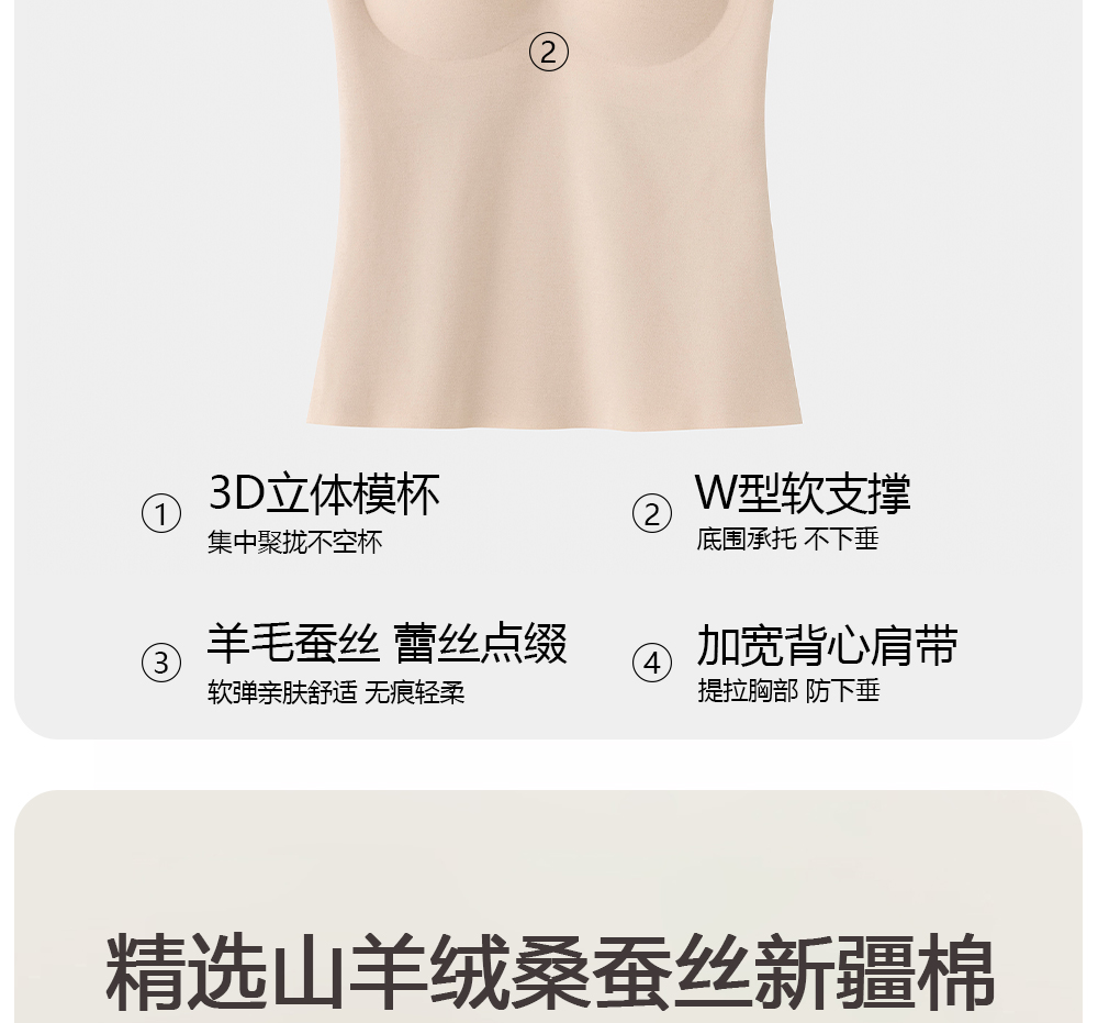 美季美优蚕丝德绒背心女秋冬保暖带胸垫文胸一体加绒无痕打底内衣