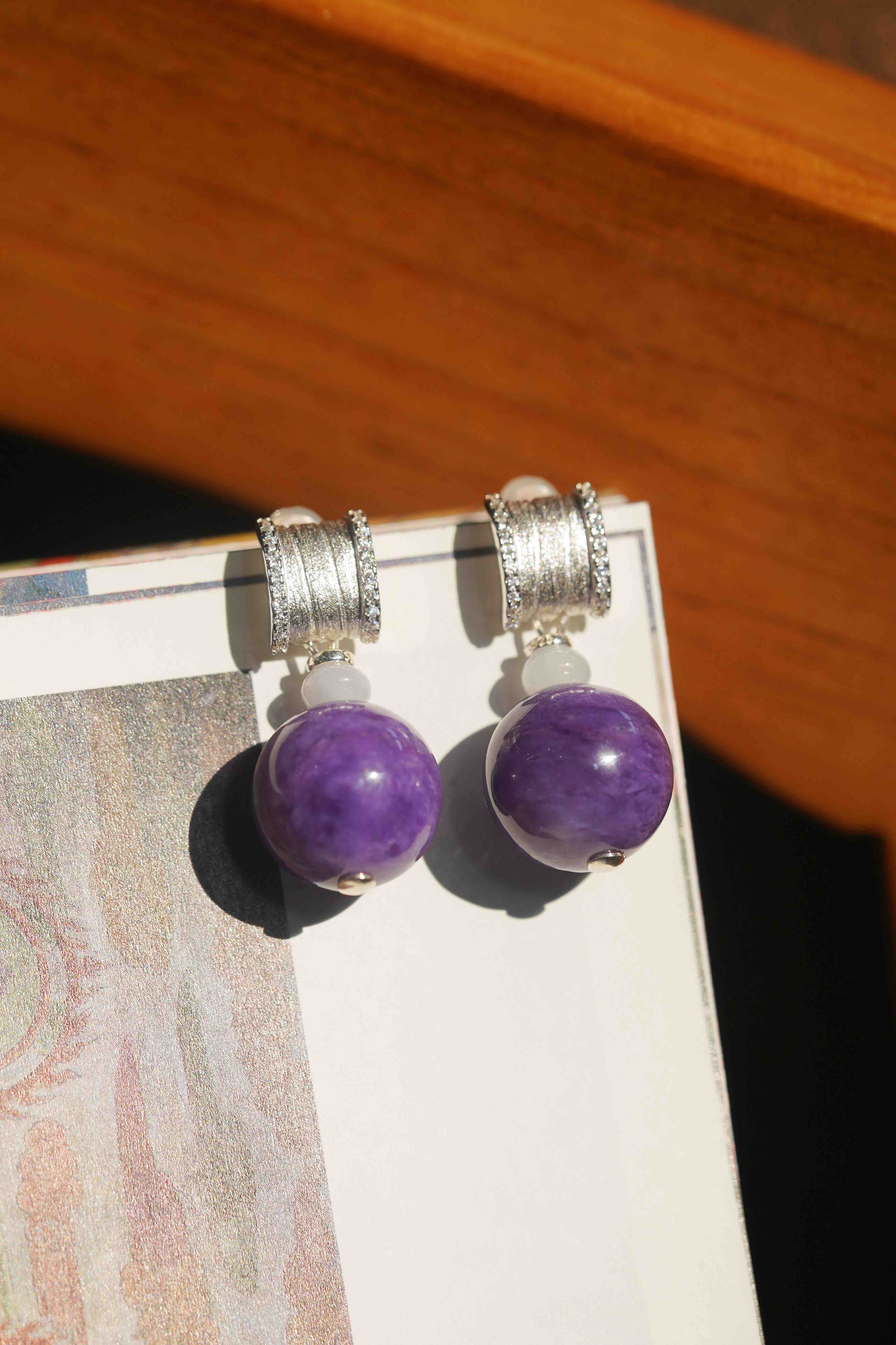 思来想去,这样的紫色大直径耳坠也是很霸气的!
