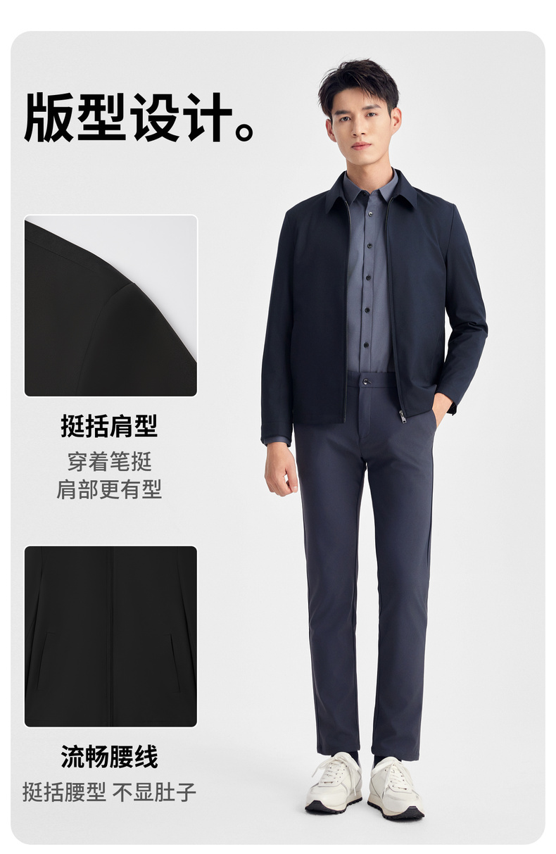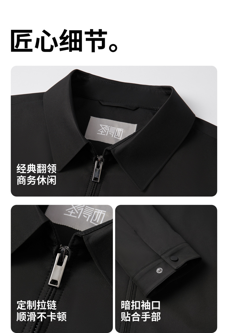 圣得西男士行政通勤翻领夹克2025秋季款商务休闲干部风简约外套
