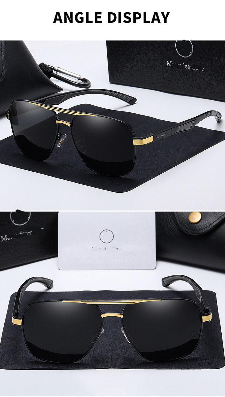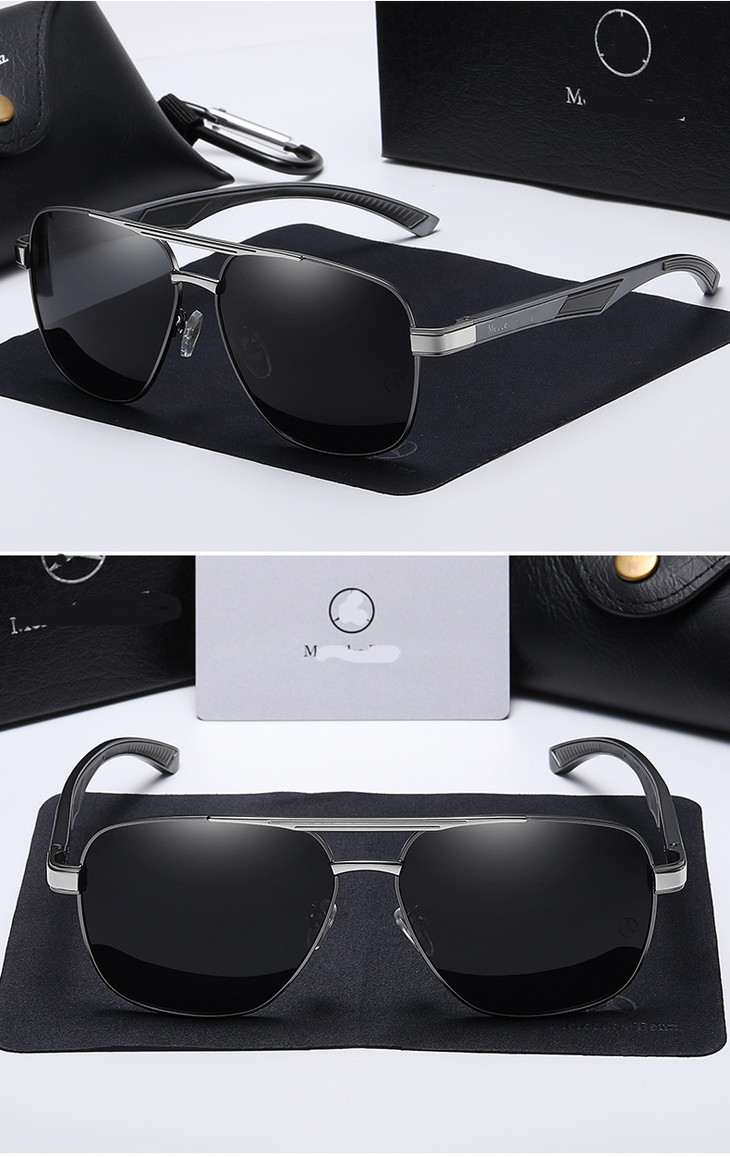 【男士时尚方框偏光太阳镜】户外骑行开车铝镁弹簧腿金属墨镜