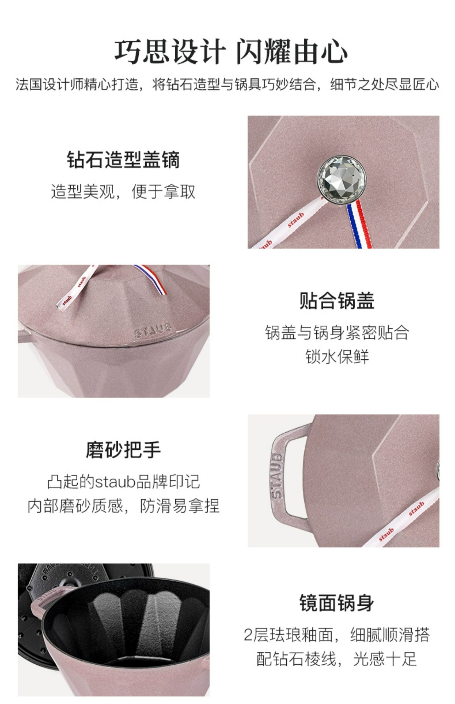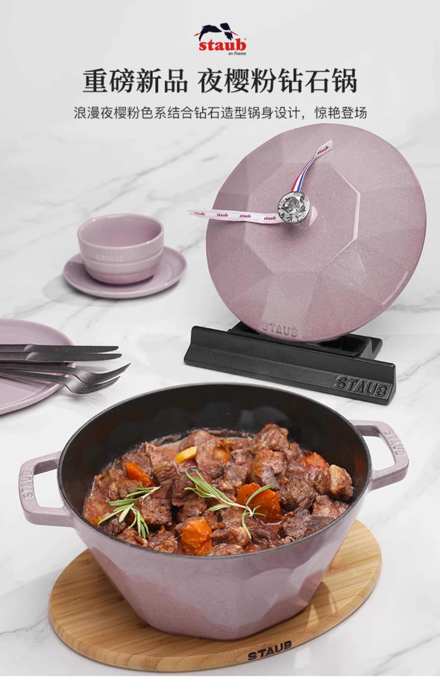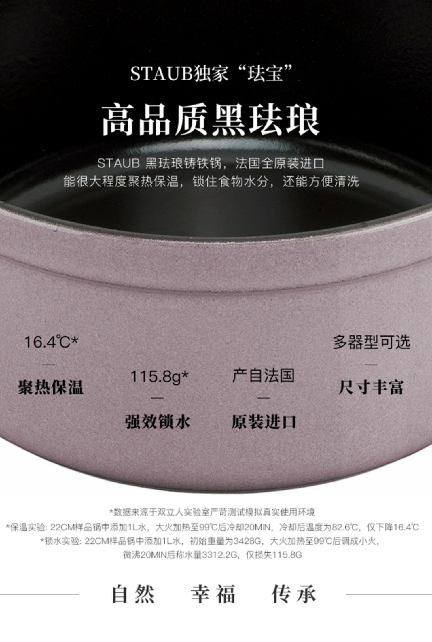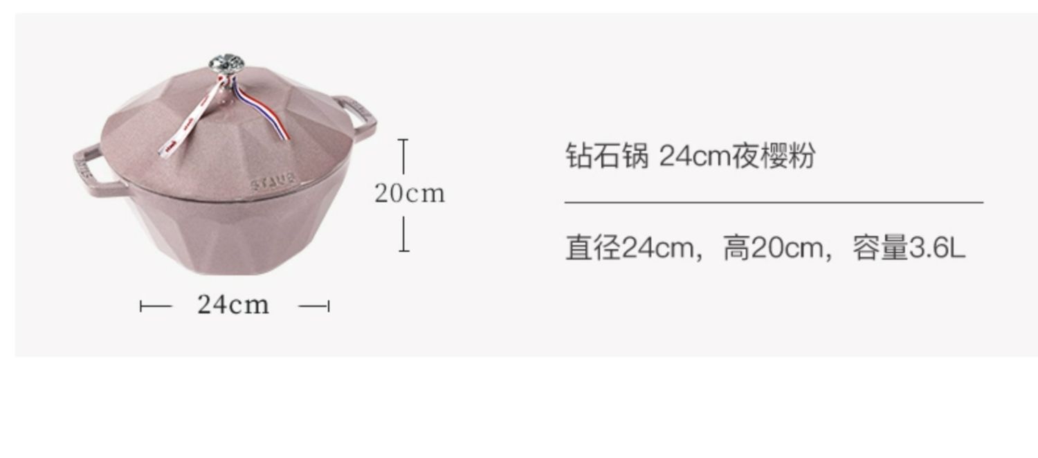 【B1】双立人staub珐宝珐琅锅法国进口夜樱粉多24厘米钻石锅(满1000元包邮)