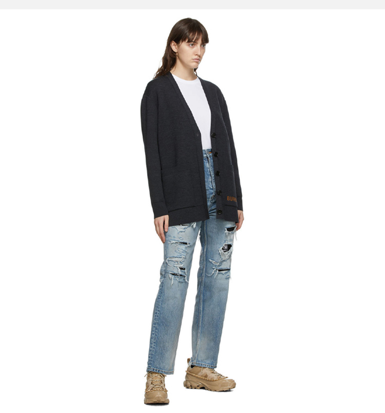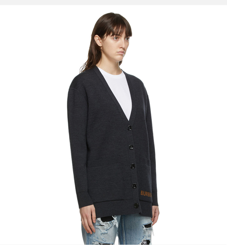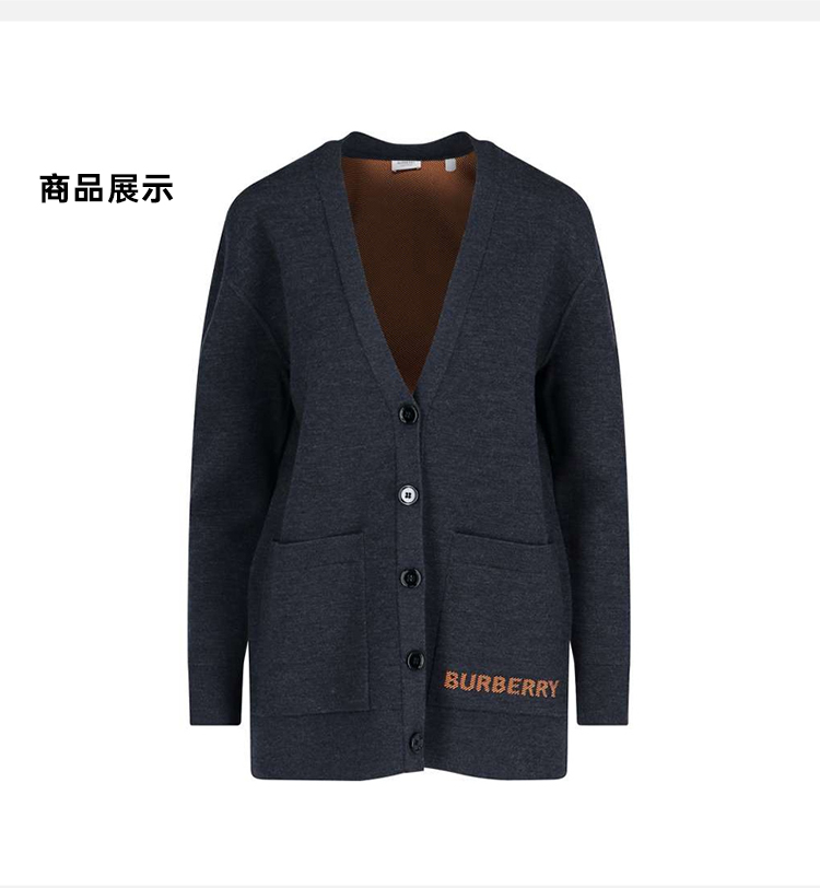 BURBERRY 巴宝莉 女士徽标功能性美利奴羊毛提花针织开衫 深灰色 8034440 A2136