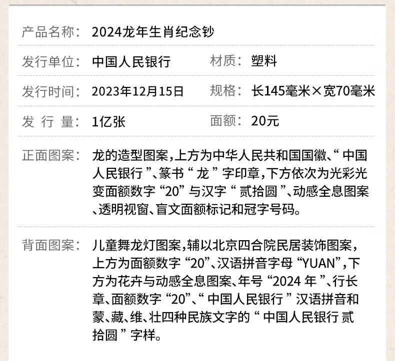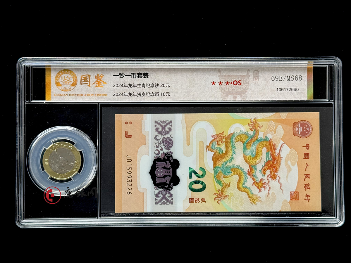评级版《2024龙年贺岁纪念钞&纪念币套装》小龙钞 国鉴金标