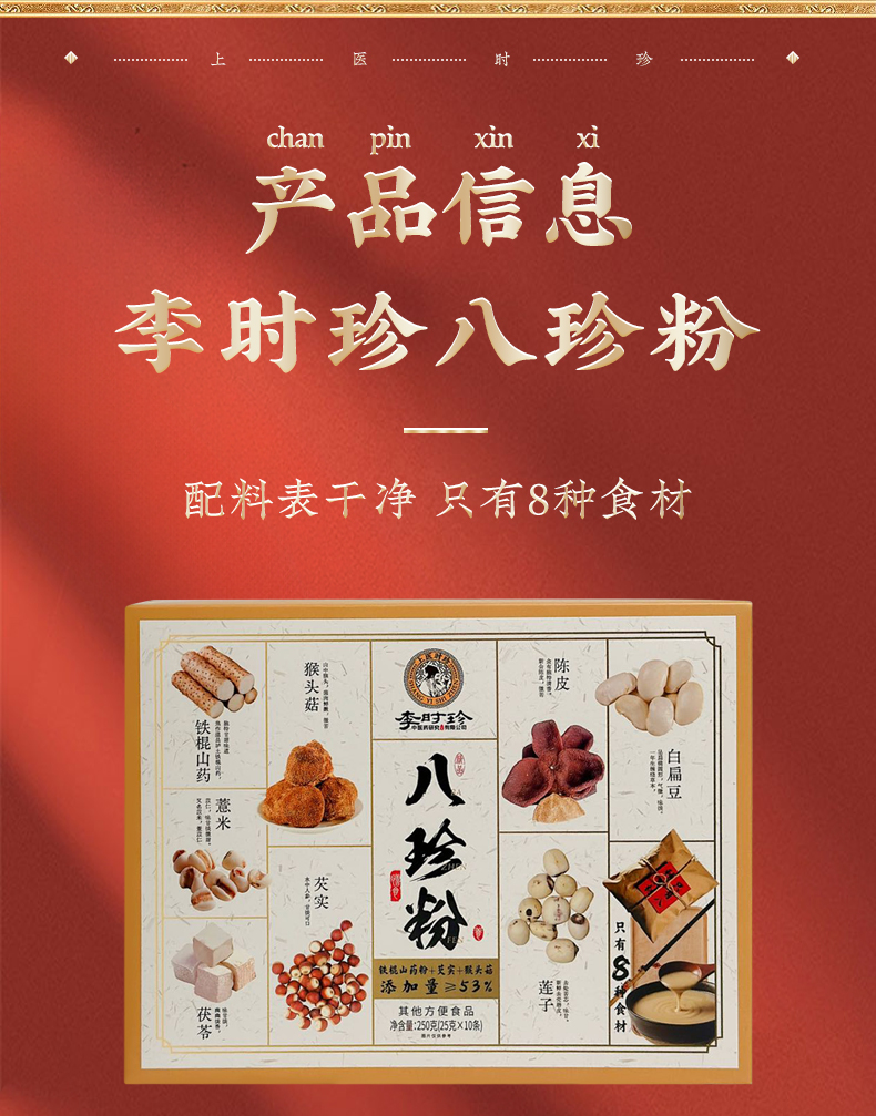 【小来】【传承古方 养护肠胃】李时珍·八珍粉 多种药食同源食材 全面养护肠胃 浓郁醇香 清爽不腻 配料干净 独立小包装 15g*10条/盒