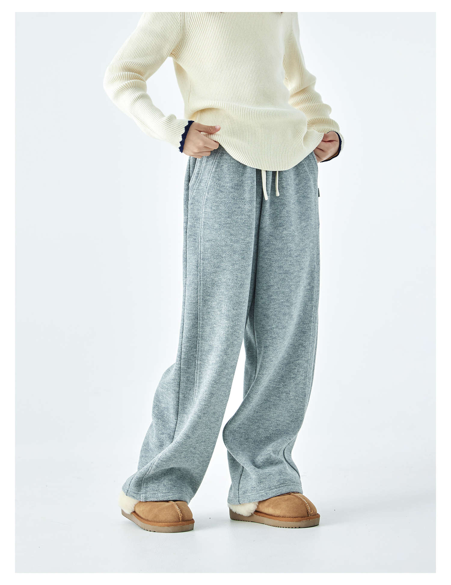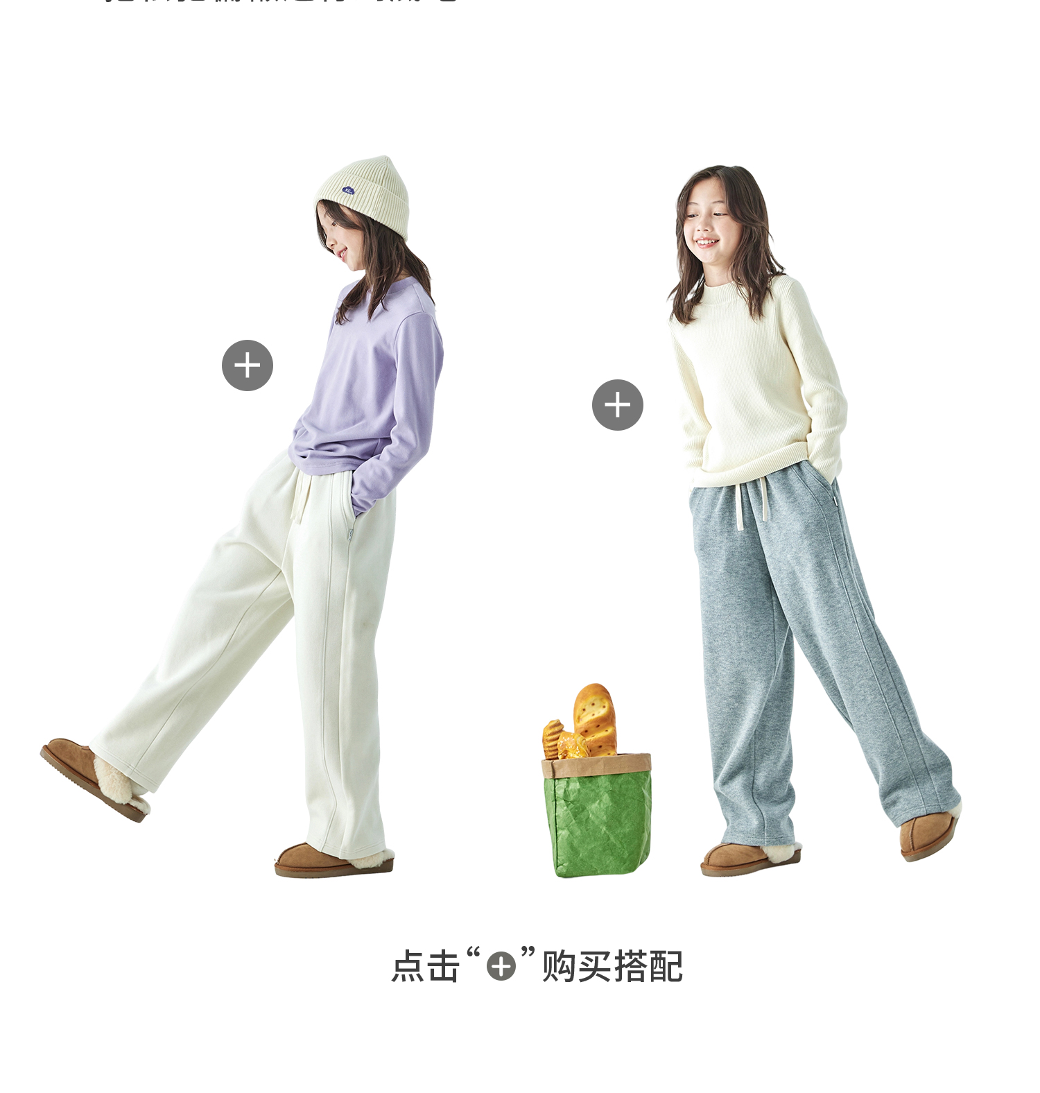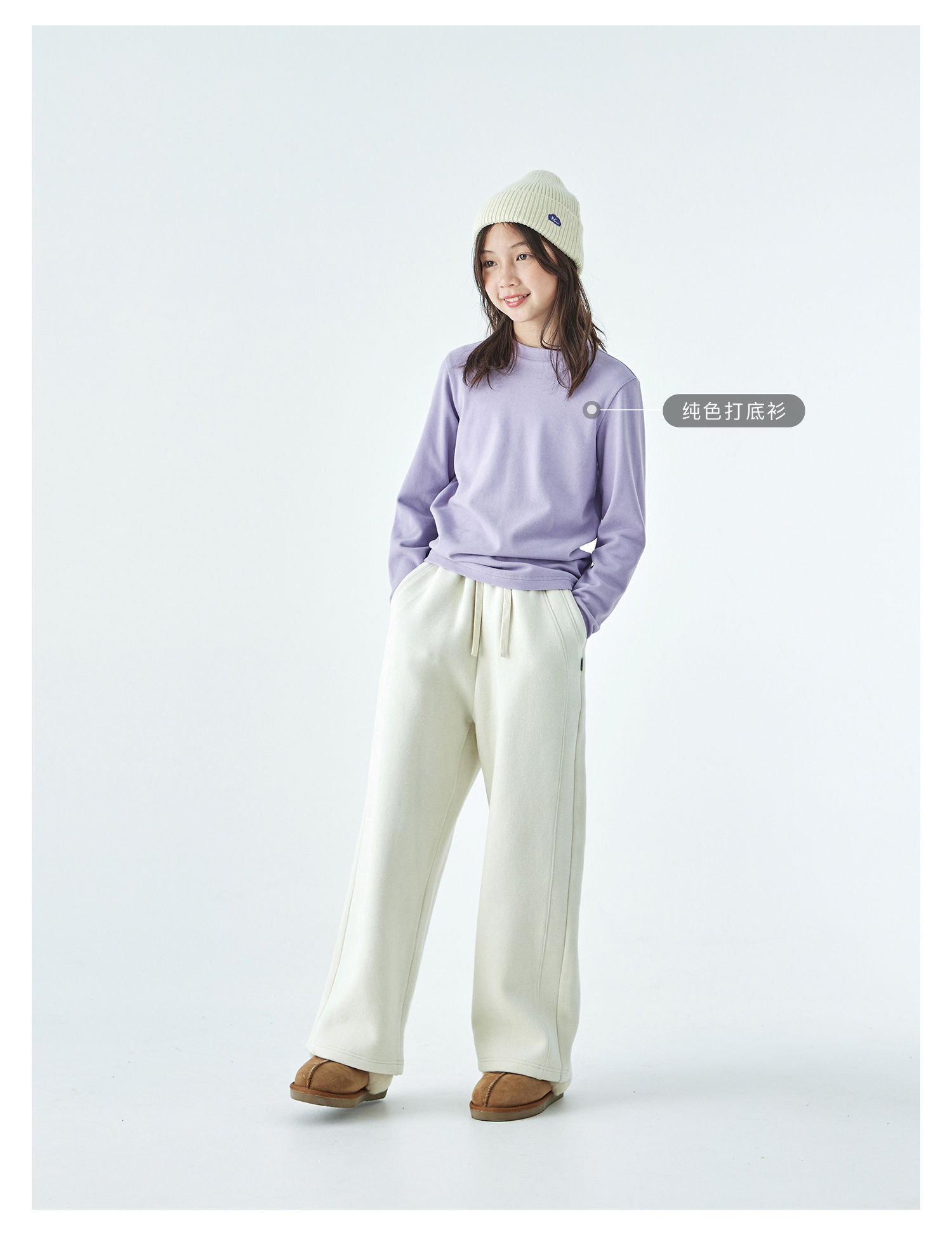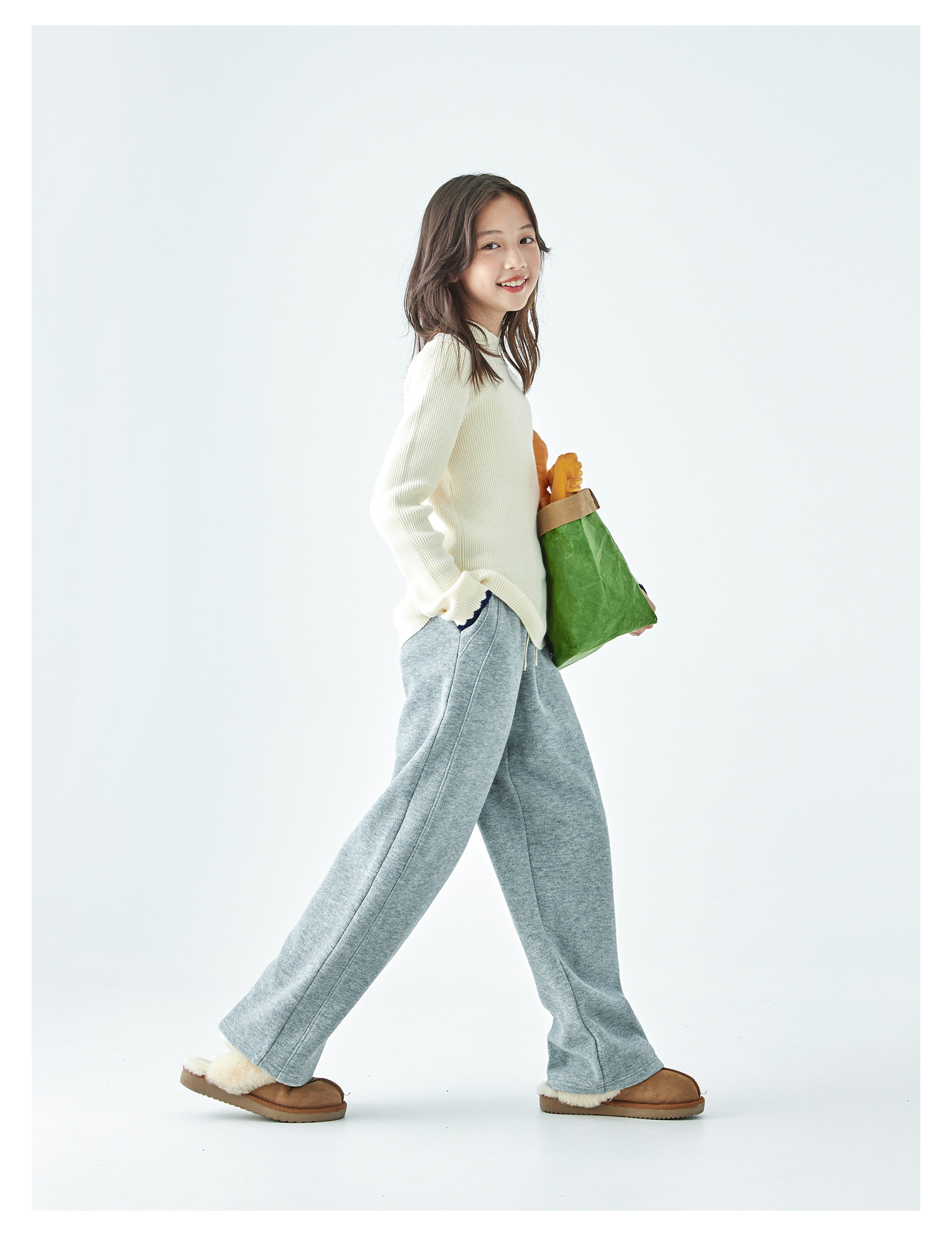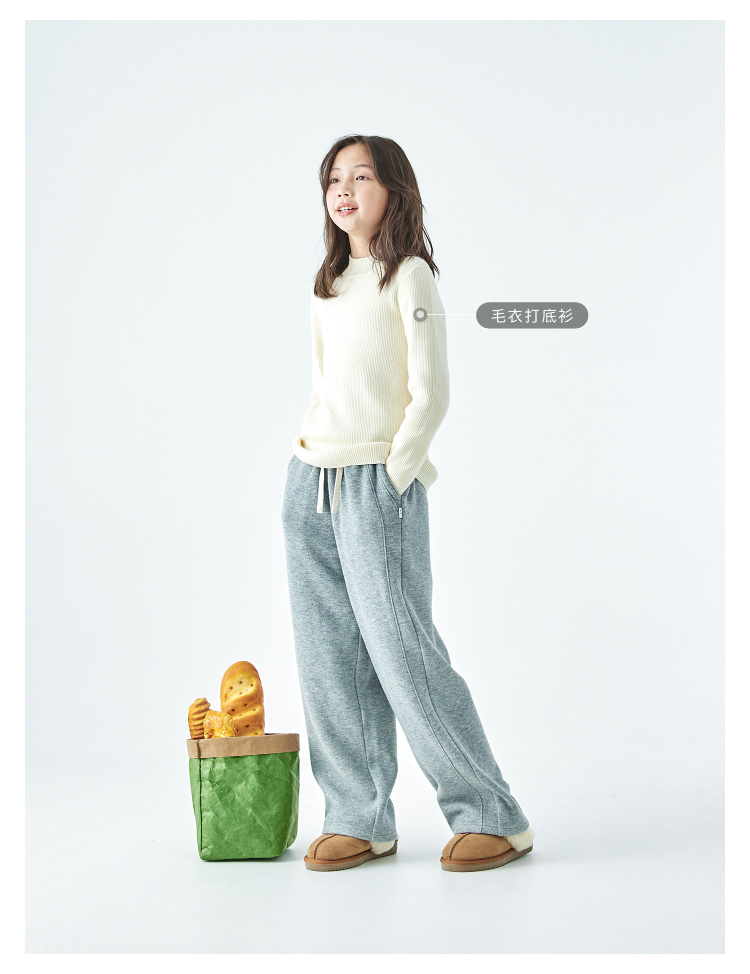 花灰-加绒款预售1.3发 棵初2025年秋冬季新款亲子中大女童抽绳休闲卫裤软糯针织直筒裤