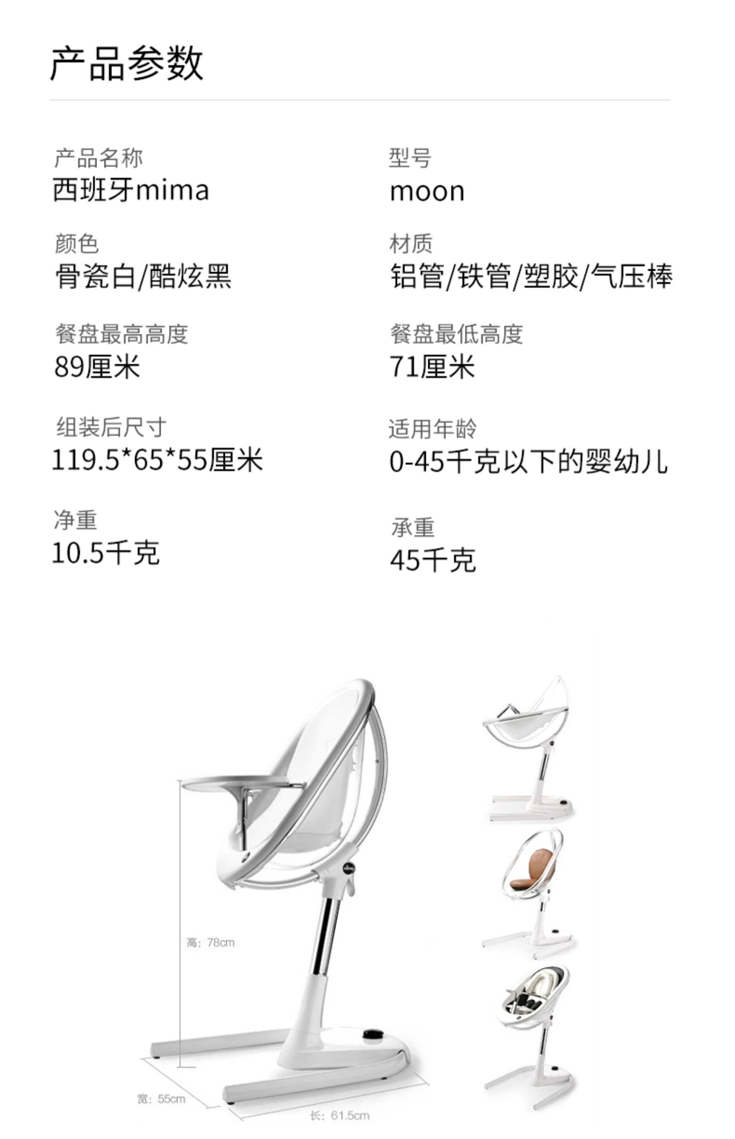 西班牙mima moon宝宝吃饭餐椅多功能儿童餐椅可调节高度欧式餐椅