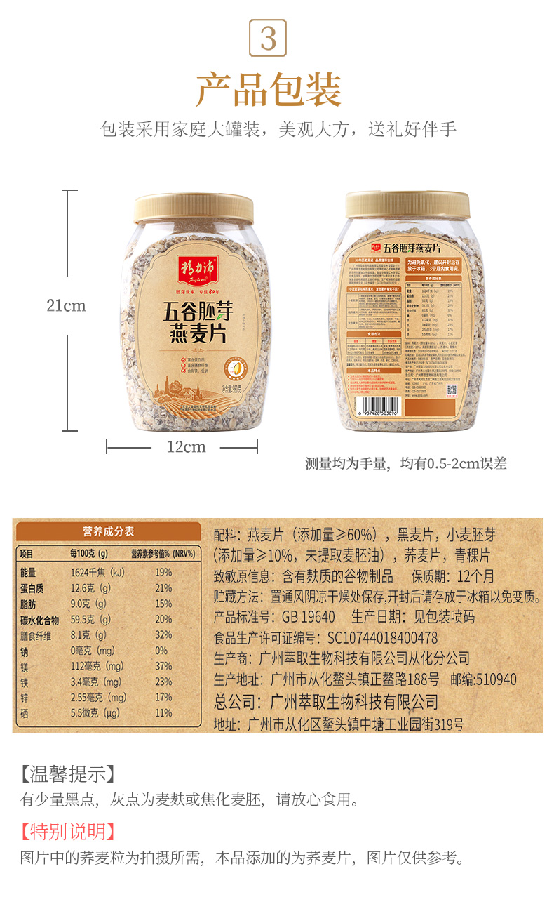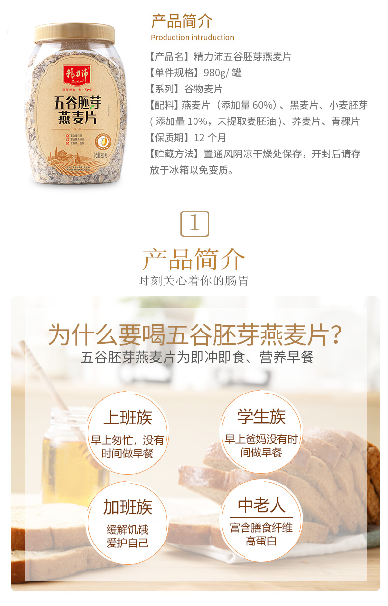 精力沛牌五谷胚芽燕麦片980g