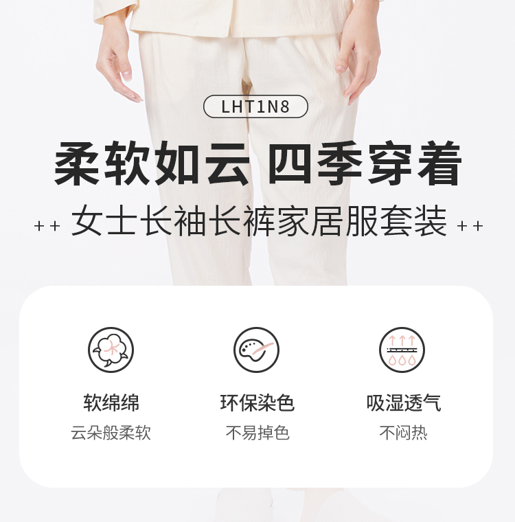 都市丽人睡衣好睡好眠长袖家居服软绵绵1.0薄女士软绵绵长袖长裤LHT1N8