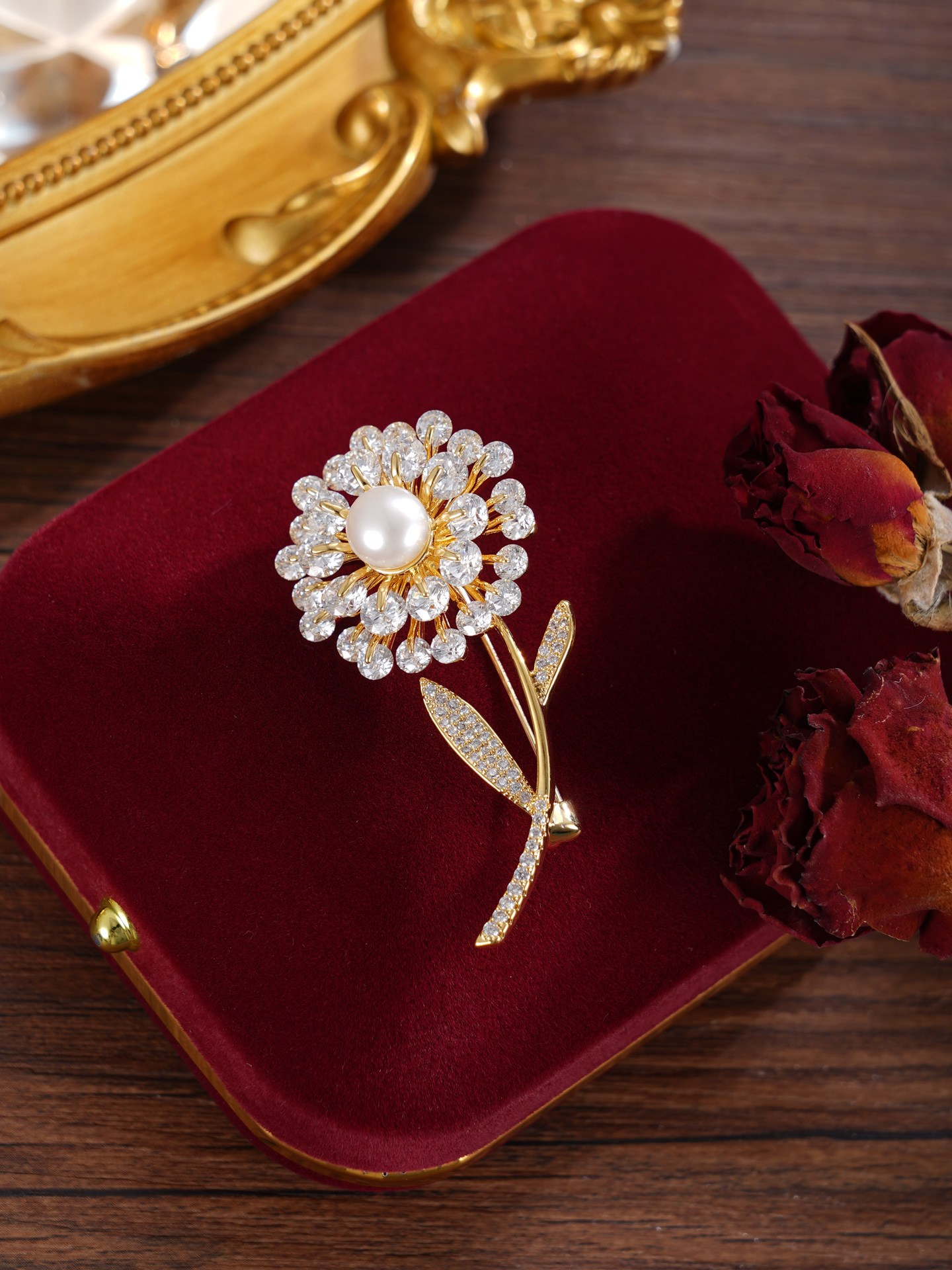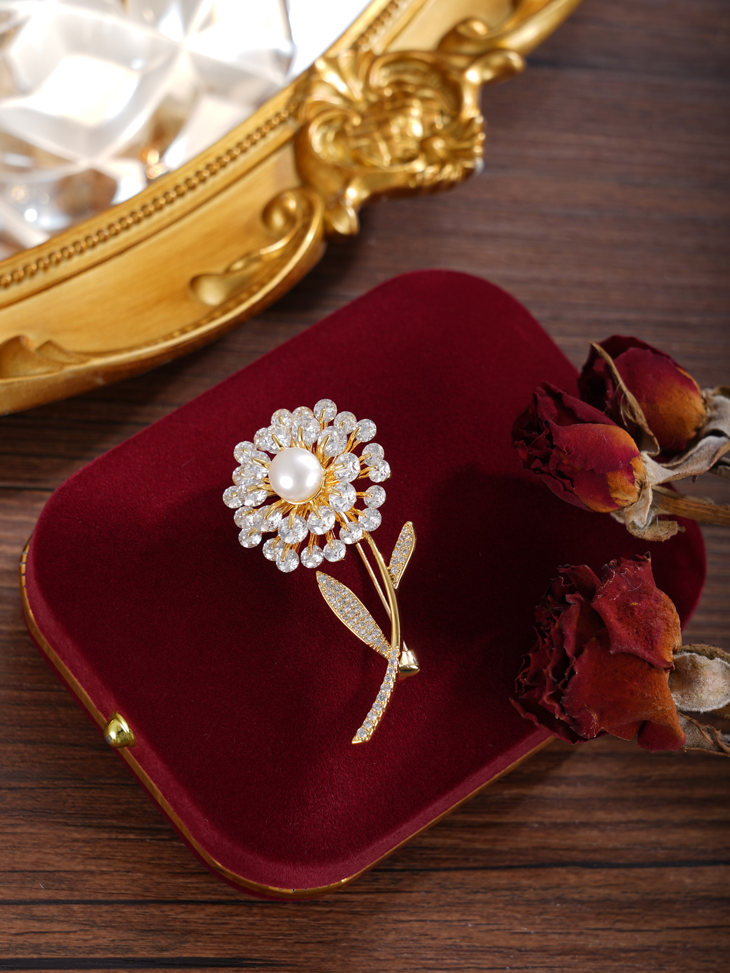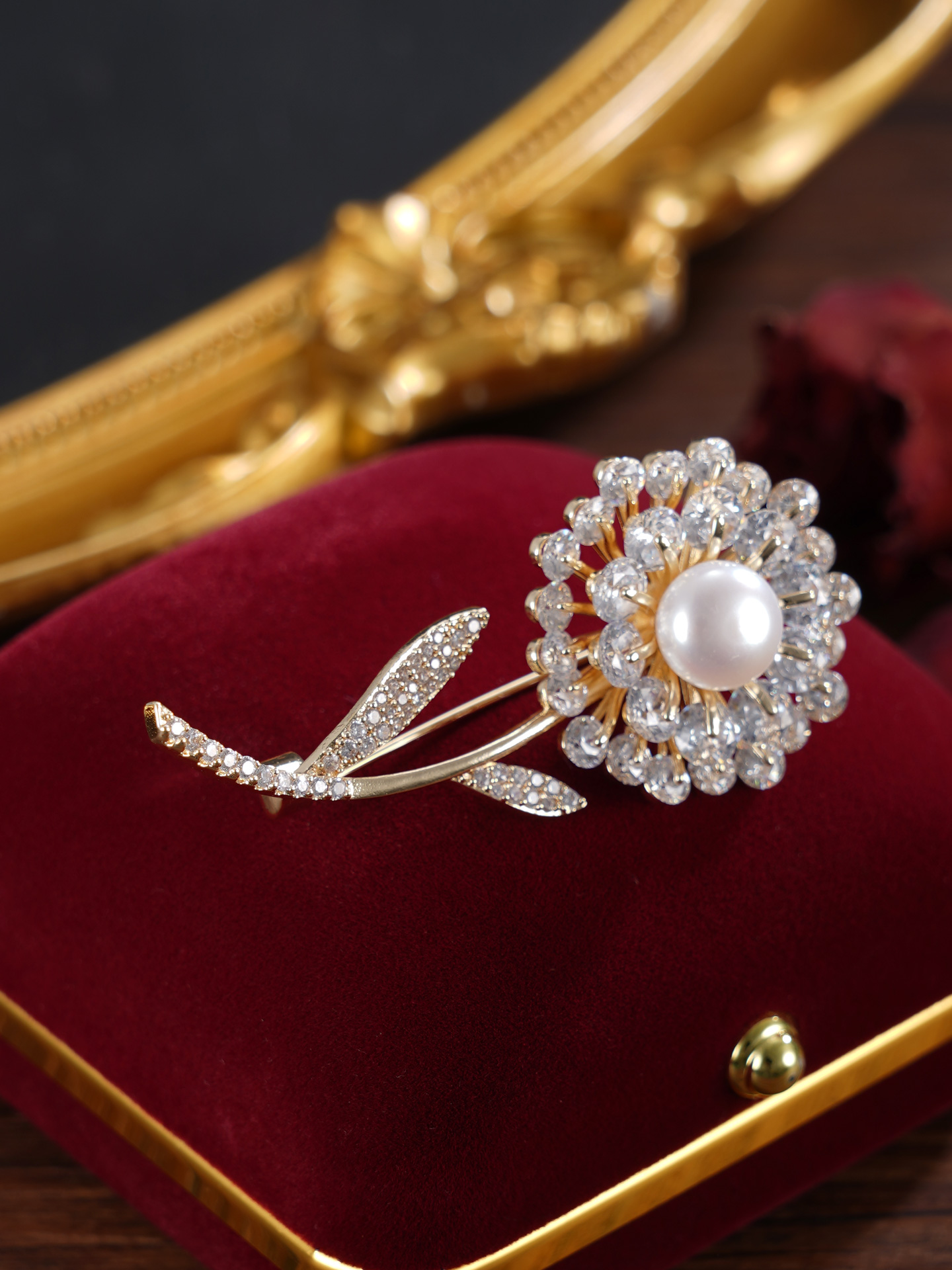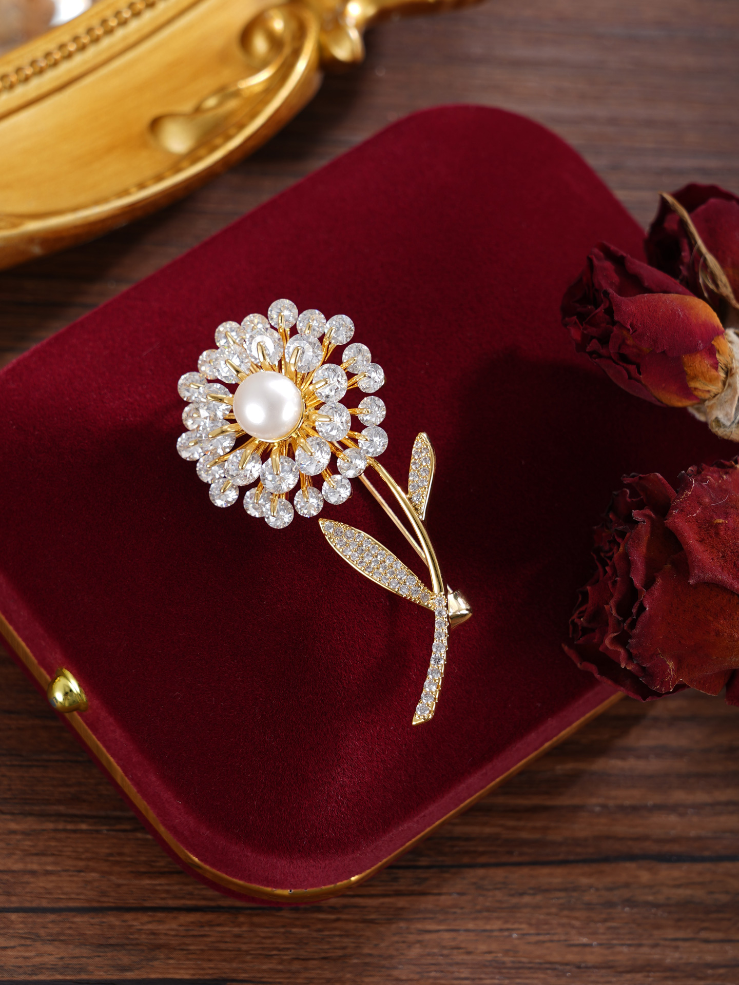 子佩集【蒲月风和】珍珠惜王妃胸针【XXXZ235】7.5mm珠镀金蒲公英2601