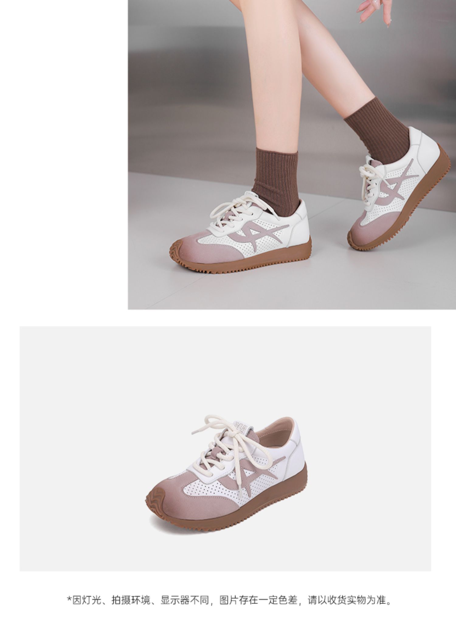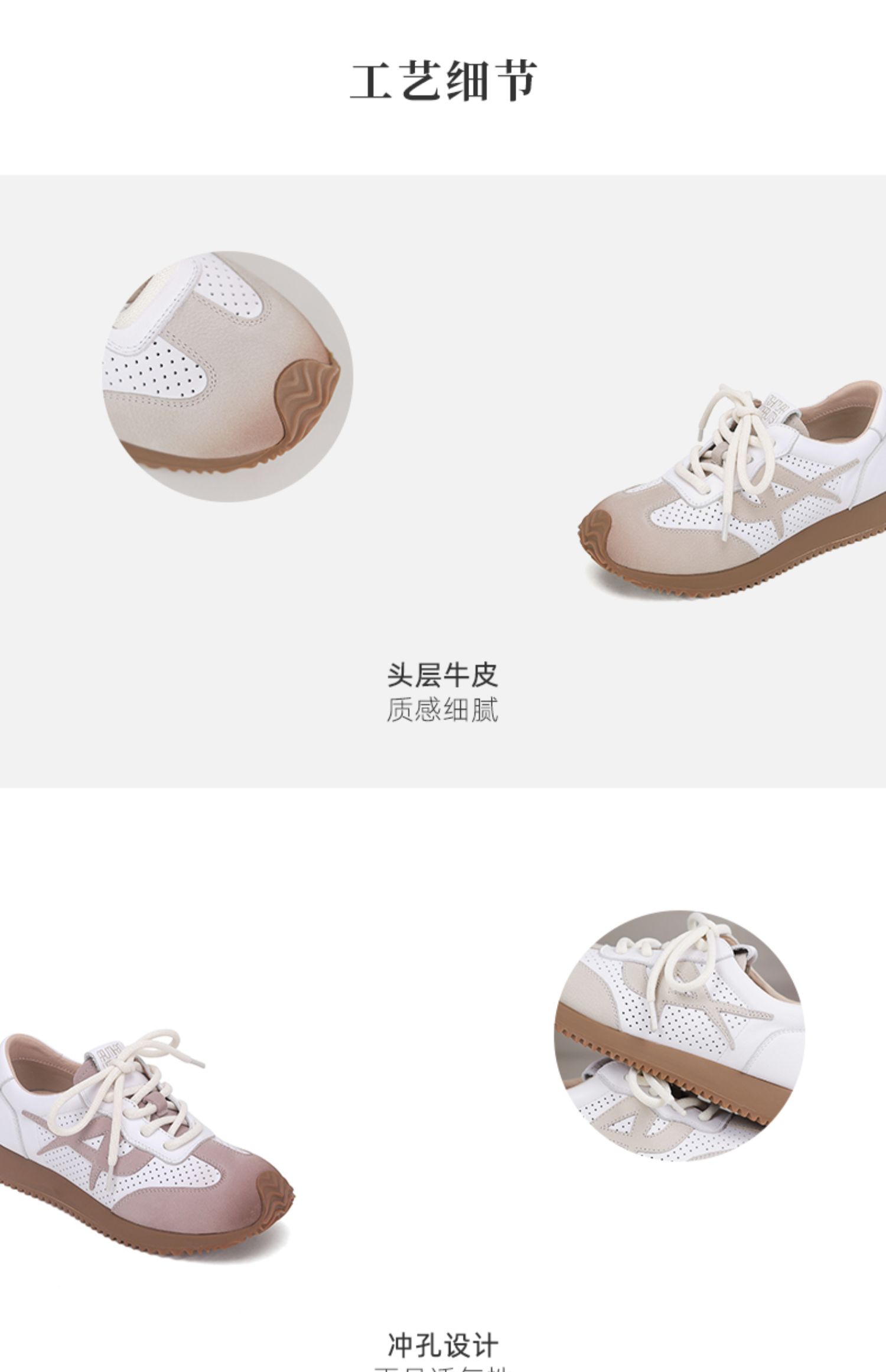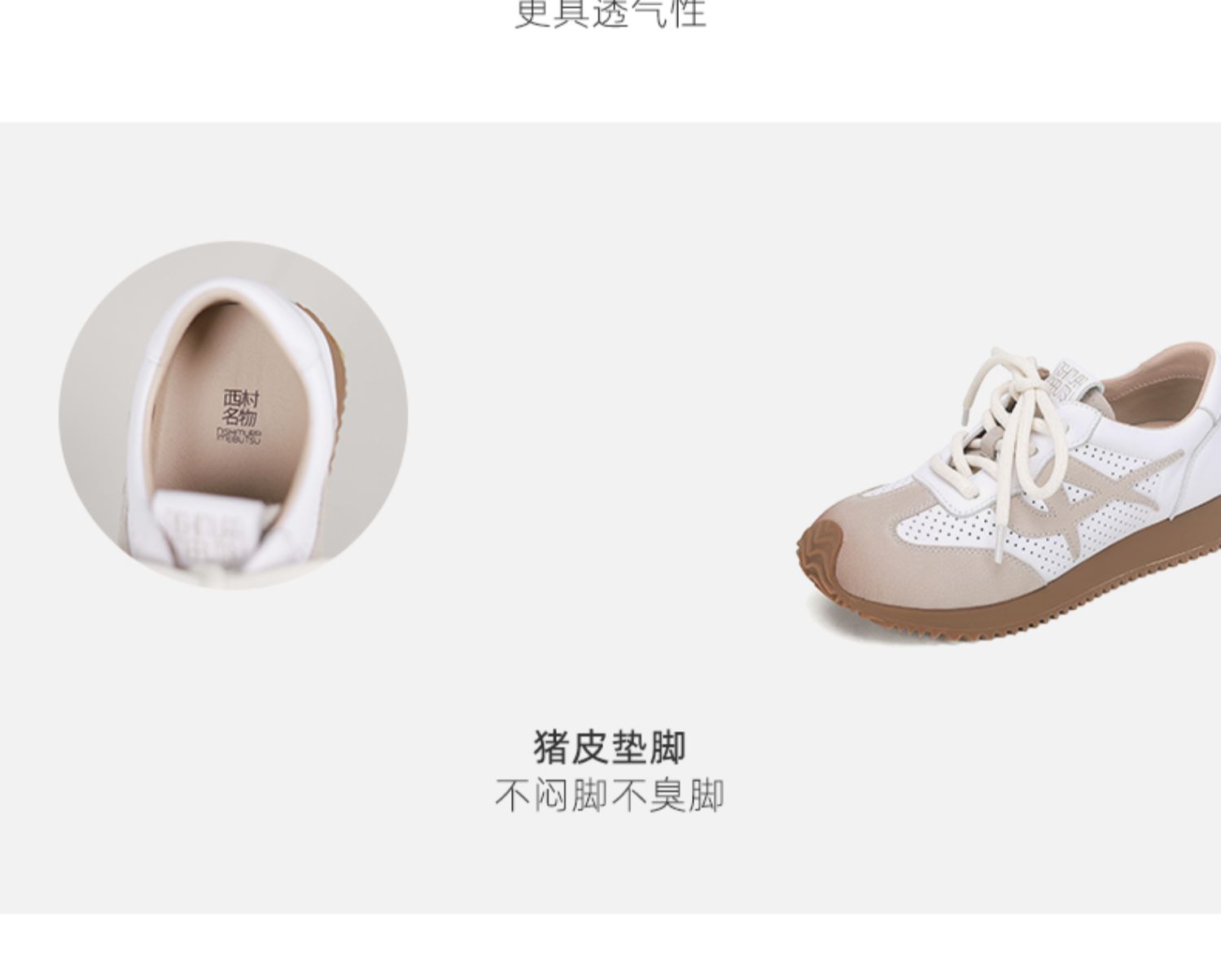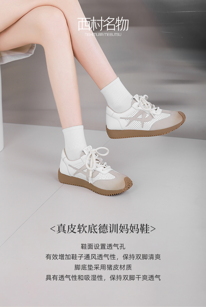 西村名物2024夏季新品复古真皮百搭拼色德训鞋女轻便软底休闲鞋X24AM13821