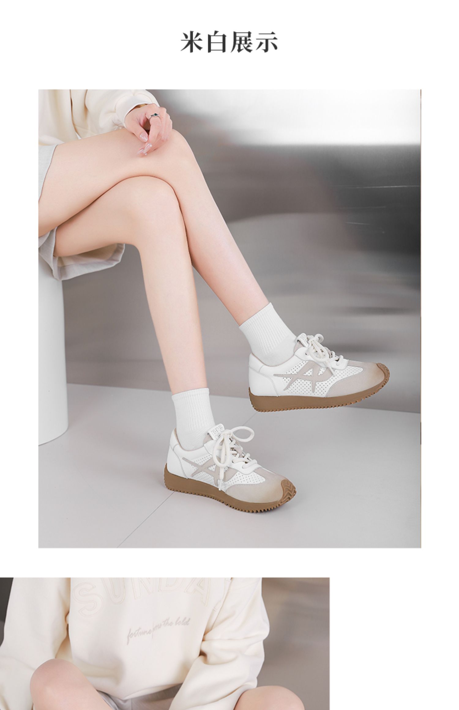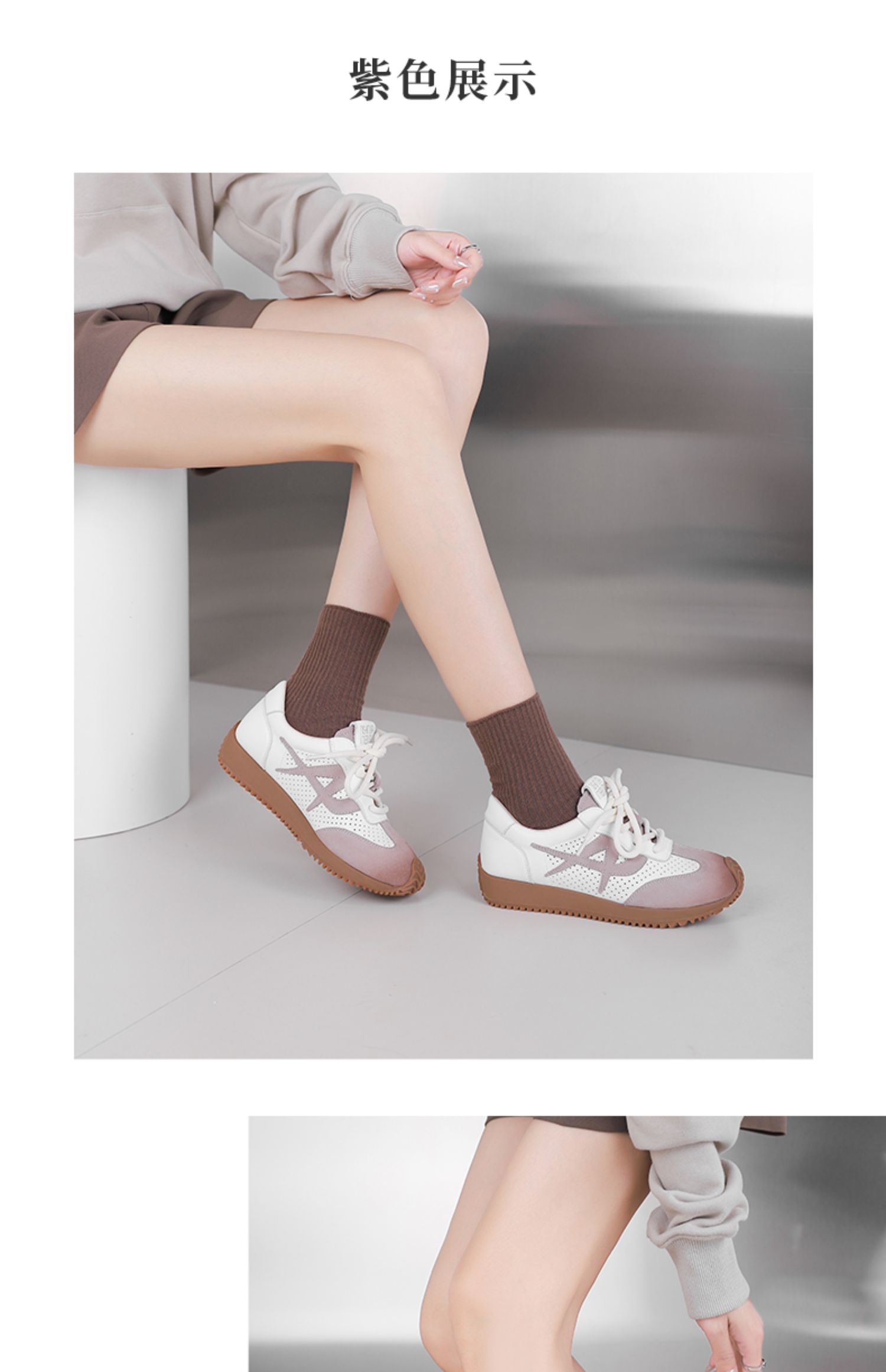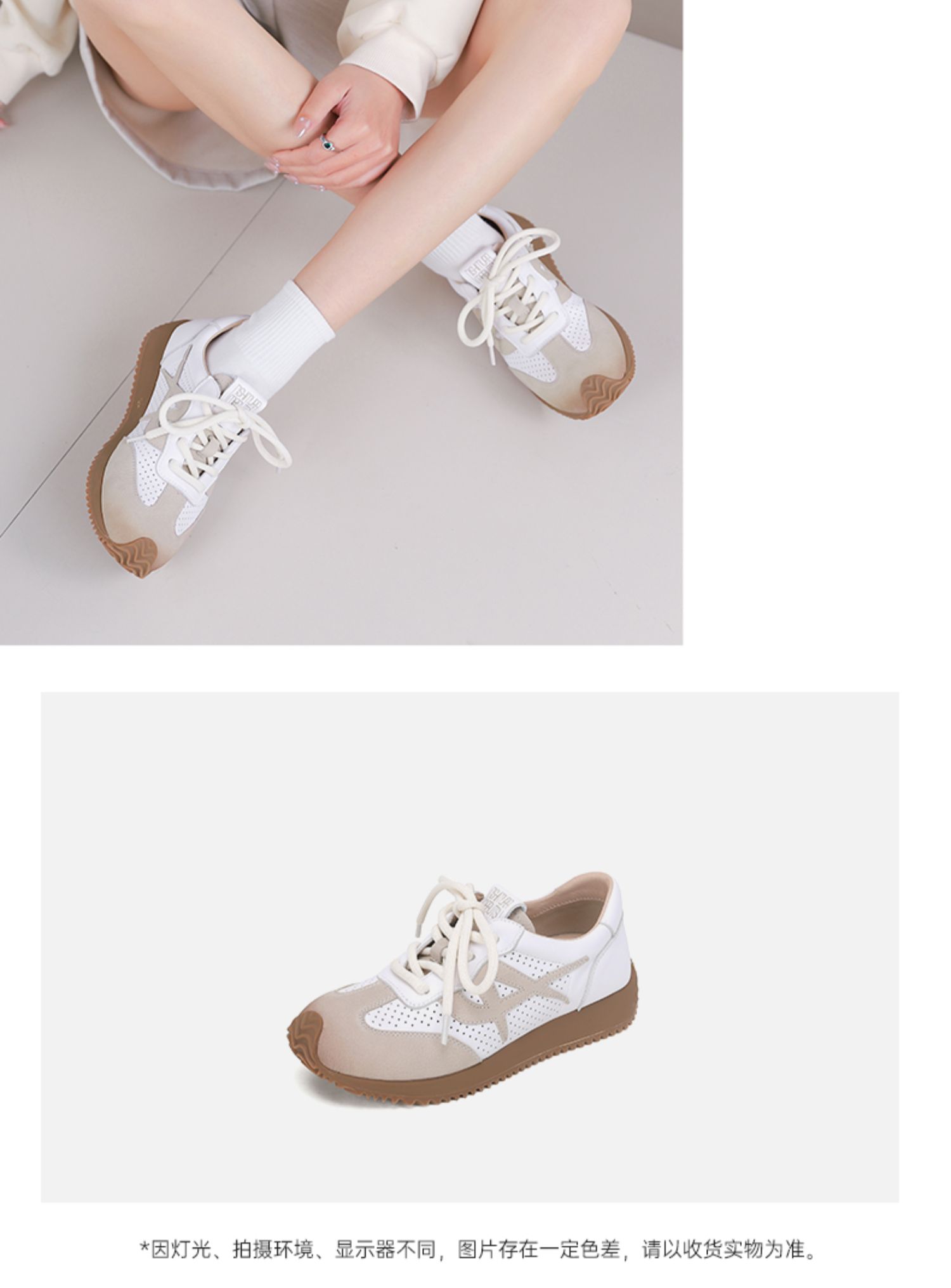西村名物2024夏季新品复古真皮百搭拼色德训鞋女轻便软底休闲鞋X24AM13821