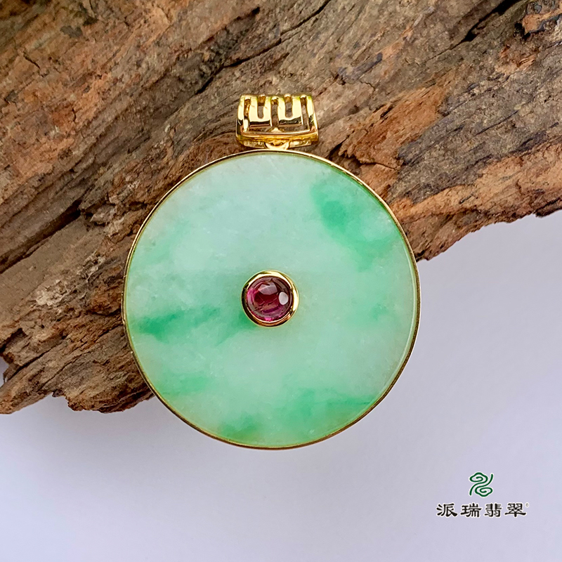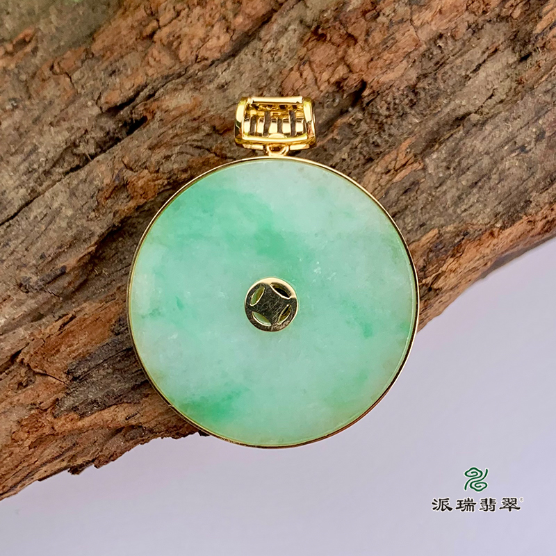派瑞翡翠 18k金翡翠吊坠 糯种 绿色