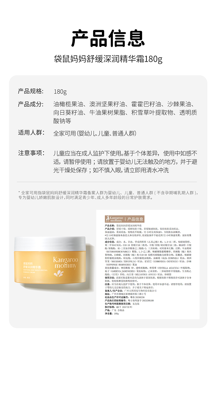 【秋冬深润霜】全家可用保湿面霜 积雪草舒缓 舒缓干痒红 改善干燥脱屑 舒缓深润精华霜180g