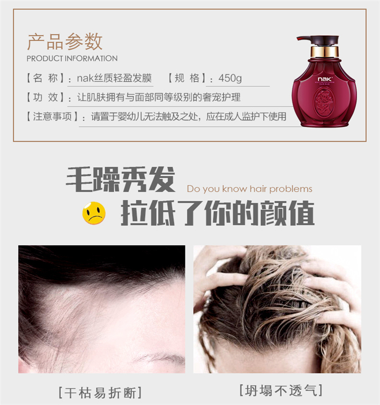 NAK丝质轻盈发膜450g*2瓶(新老包装随机发)