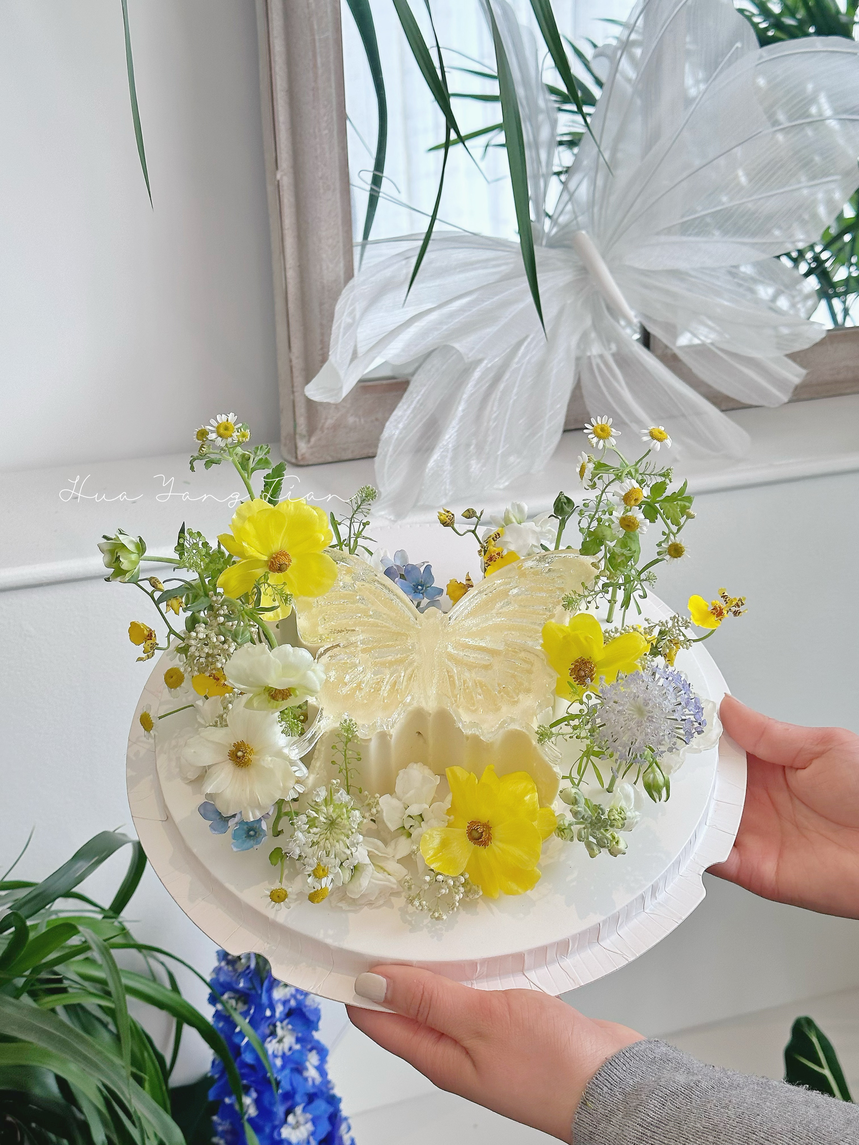 *装饰鲜花选用当季应季花材,经过清洁后包裹食品级锡纸再插入蛋糕中。鲜花不可食用,食用前请取出!拔出鲜花后锡纸易脱落在蛋糕胚中为正常现象,介意者勿拍