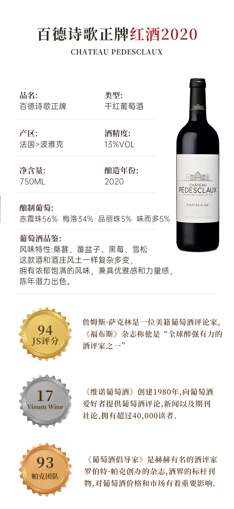 百德诗歌正牌2019.2020 Chateau Pedesclaux