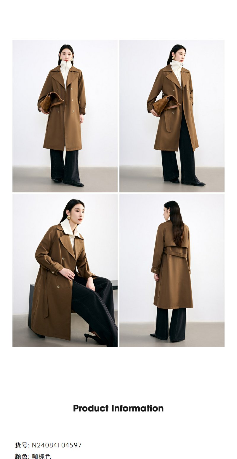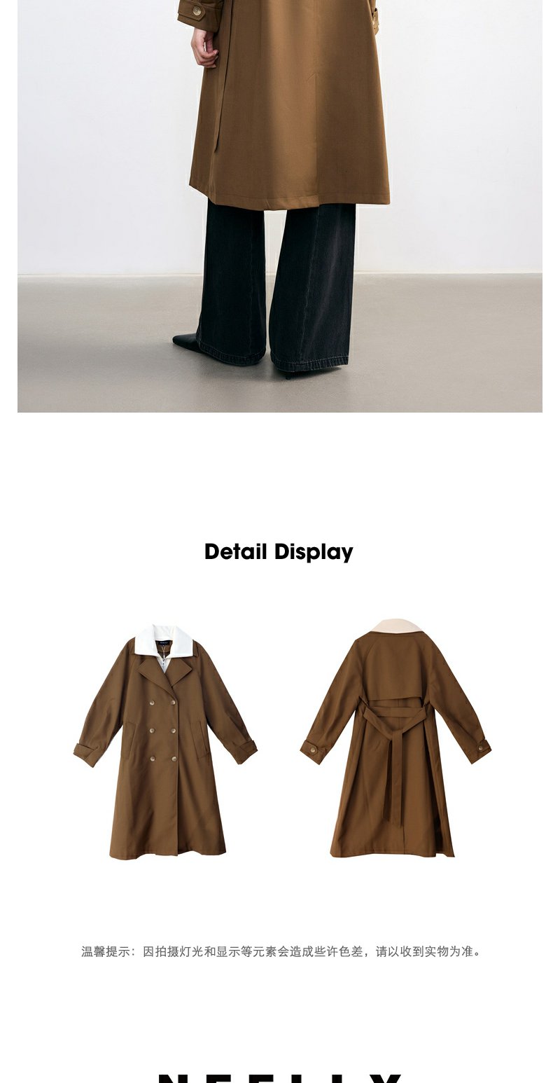 NEELLY纳俪2024秋商场同款气质通勤风衣女新款设计感西装领长外套N24084F04597