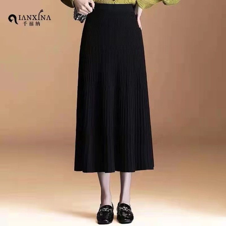 三竖条毛线裙高腰大摆A字摆针织半身裙秋冬毛线裙,竖条显瘦穿着舒服时尚,颜色黑色,尺码均码号从80-150斤,编码04481656