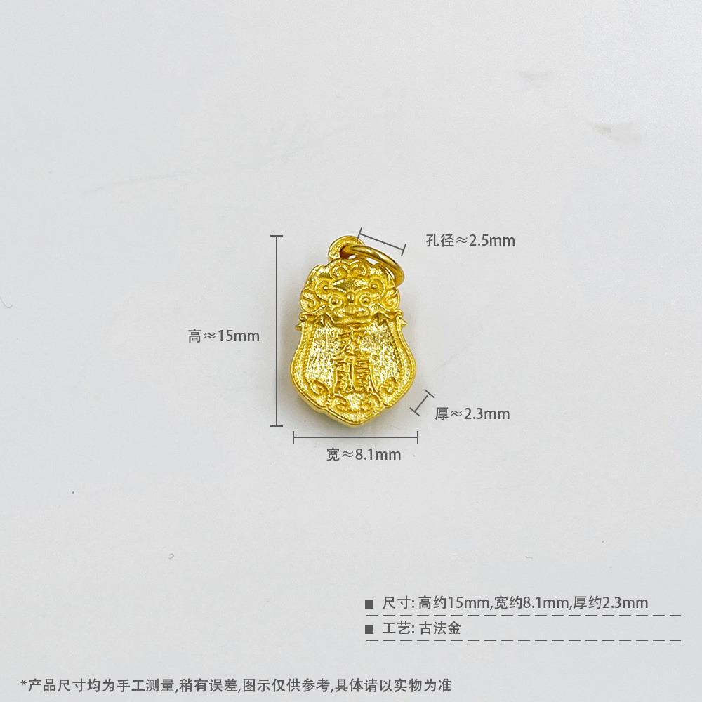 【限时7.5折】【定价黄金】足金999 古法实心顺字醒狮令牌手串挂件Diy手串配件(AKGFSC00763)预售产品下单后不退款不退货不换货不补差价