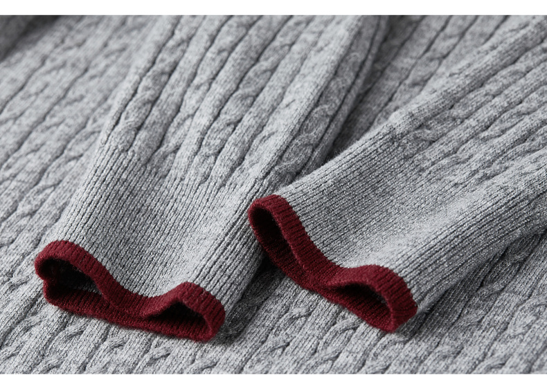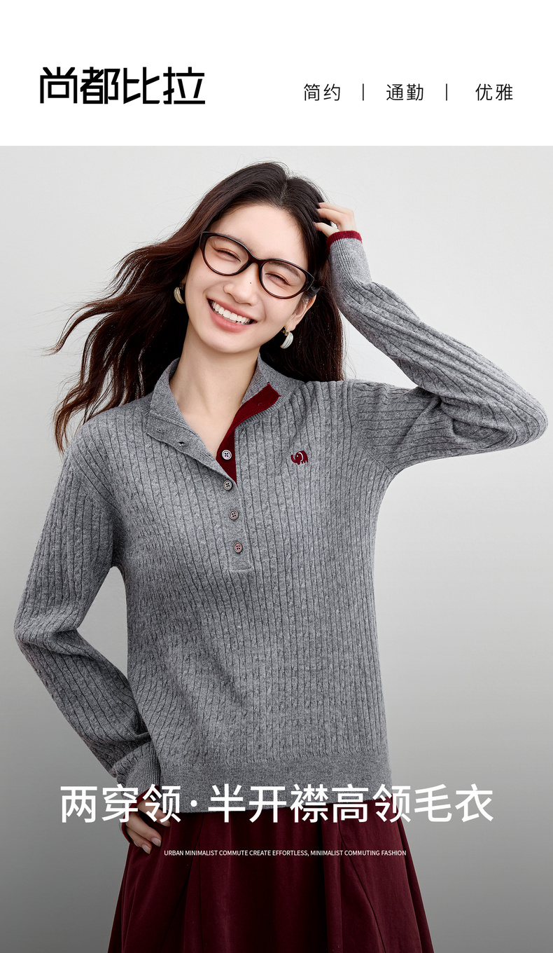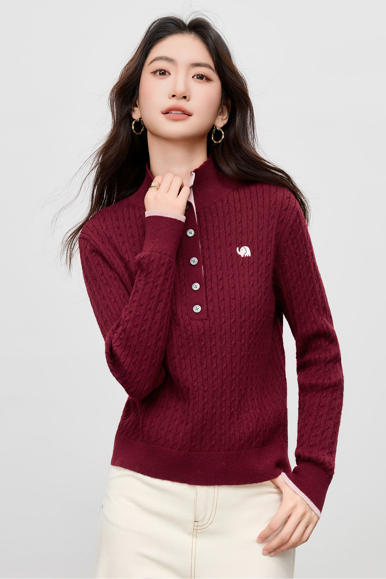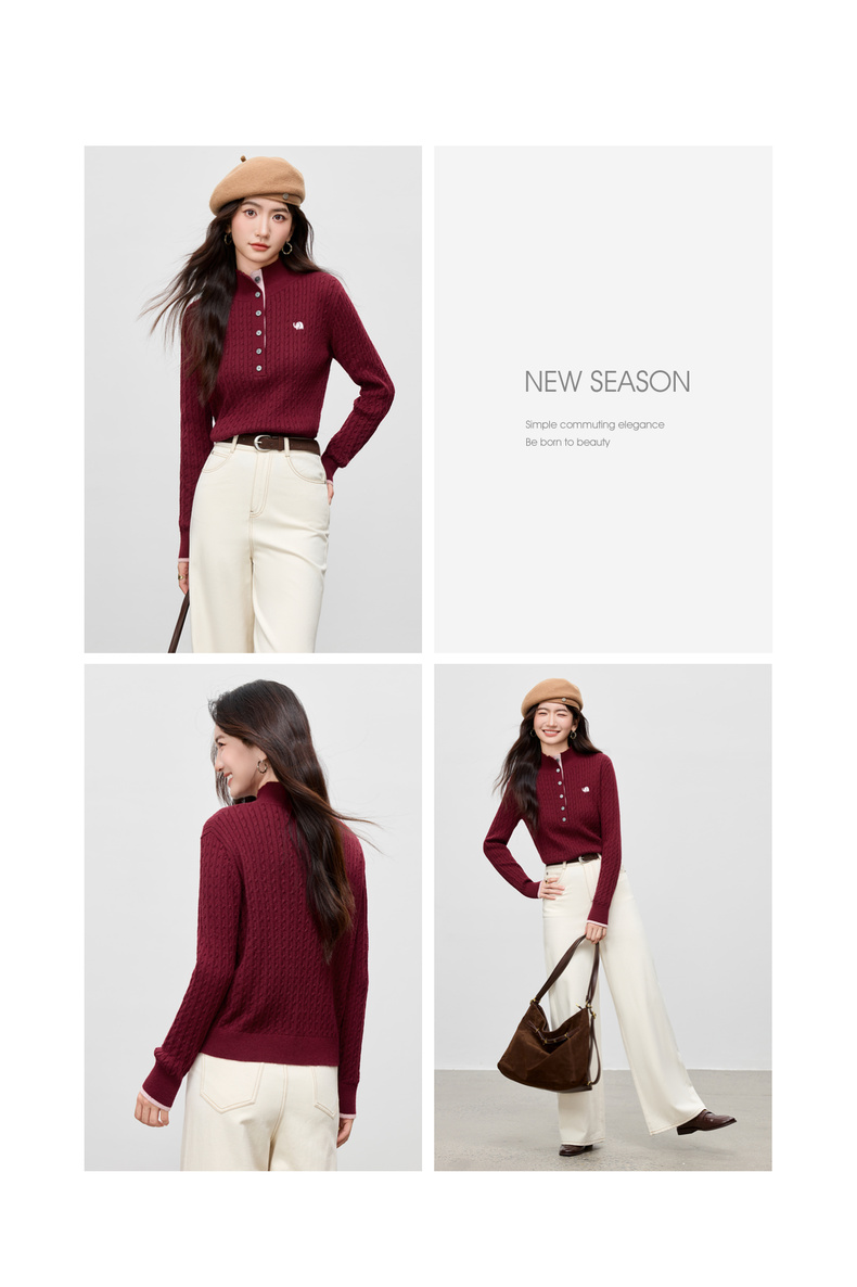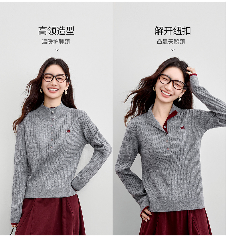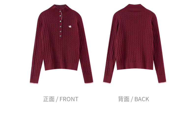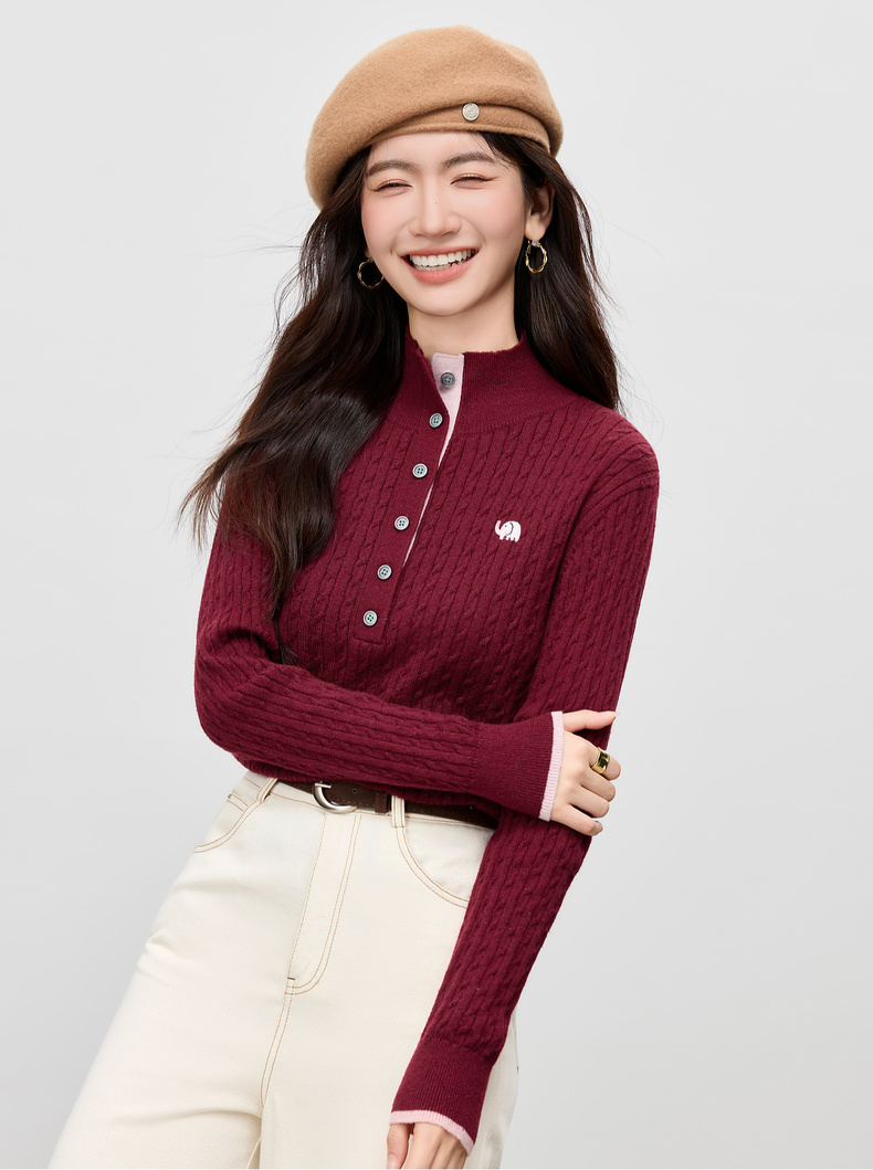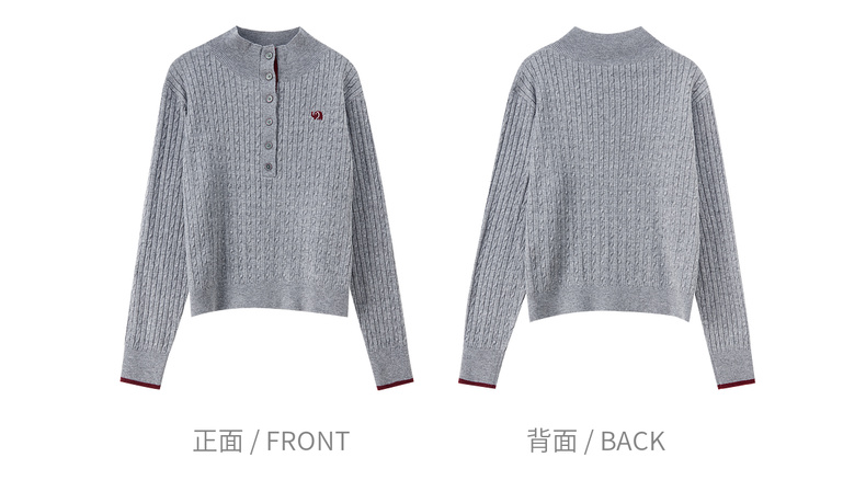 【内购】【两穿领】简约通勤撞色半开襟高领麻花绞花肌理弹力孔雀绒毛衣-W53EF3383