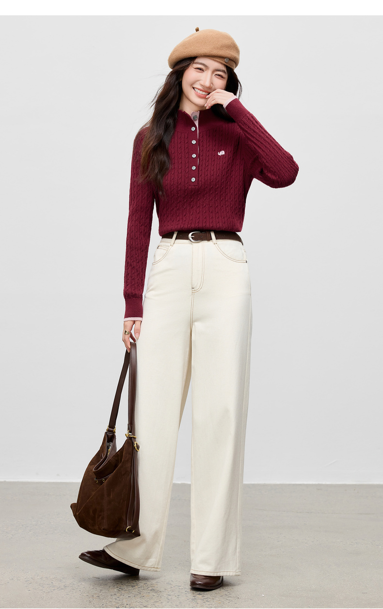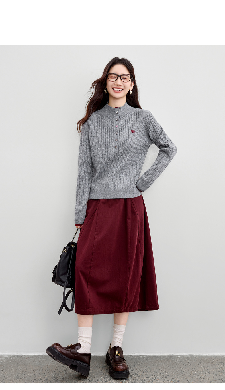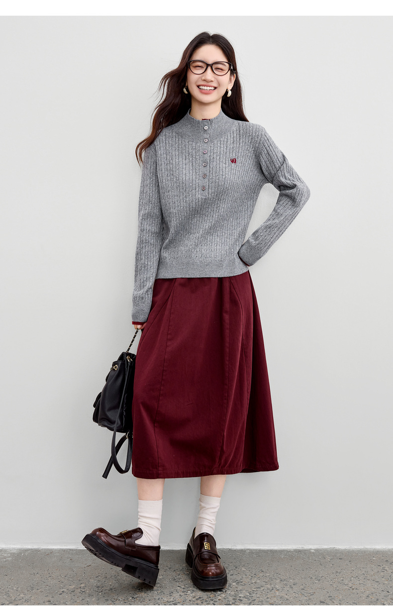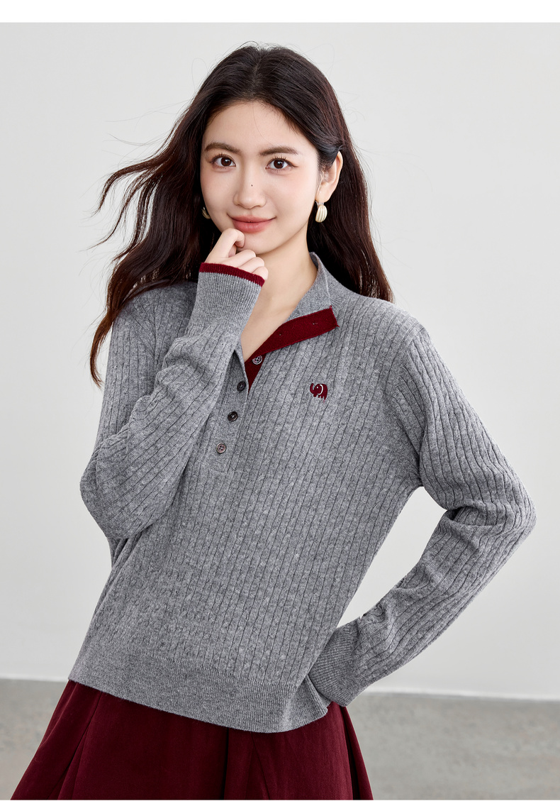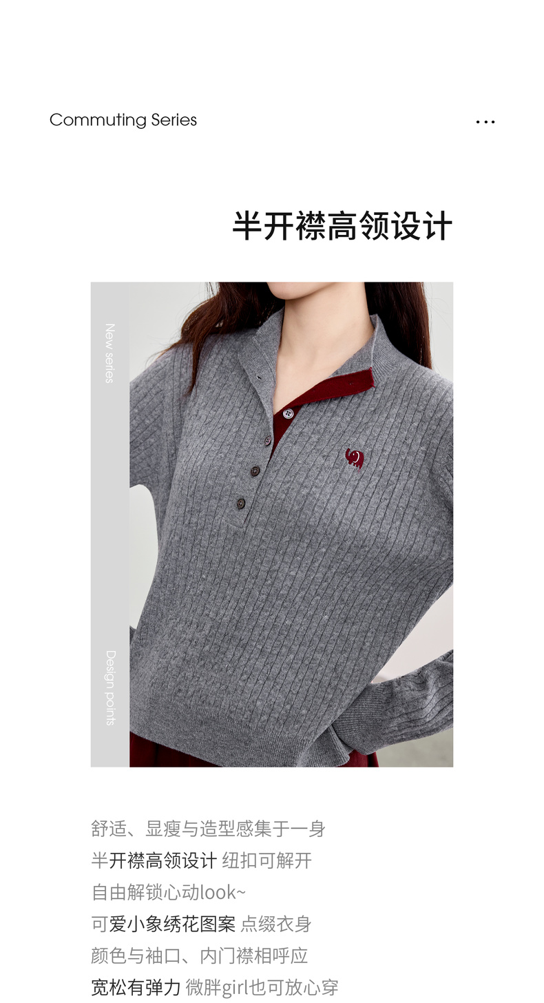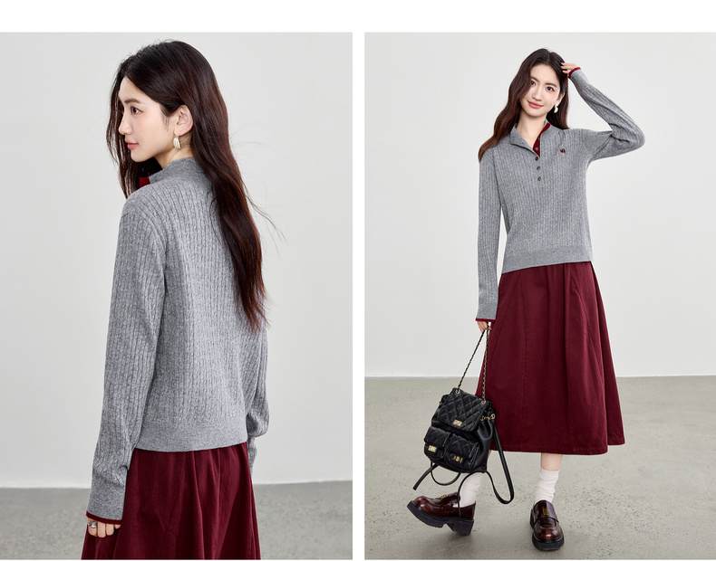 【内购】【两穿领】简约通勤撞色半开襟高领麻花绞花肌理弹力孔雀绒毛衣-W53EF3383