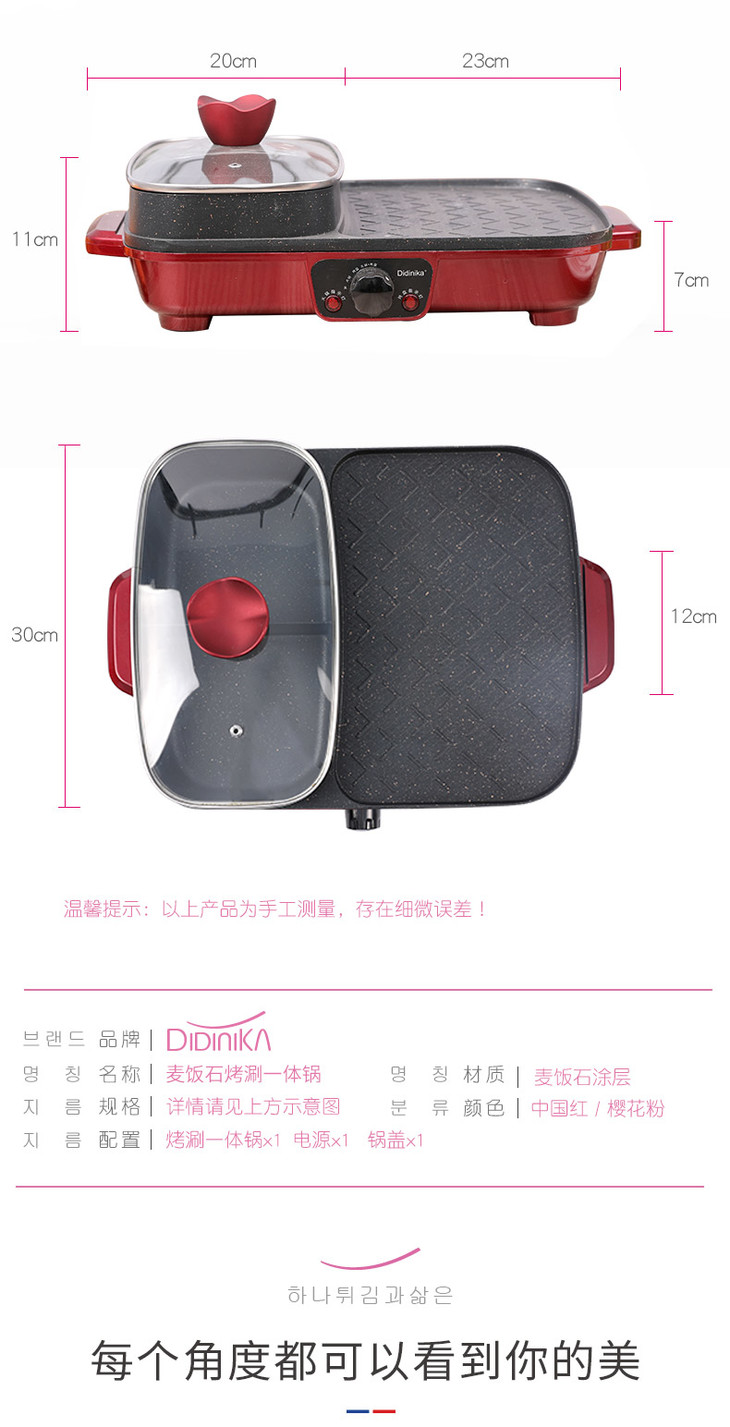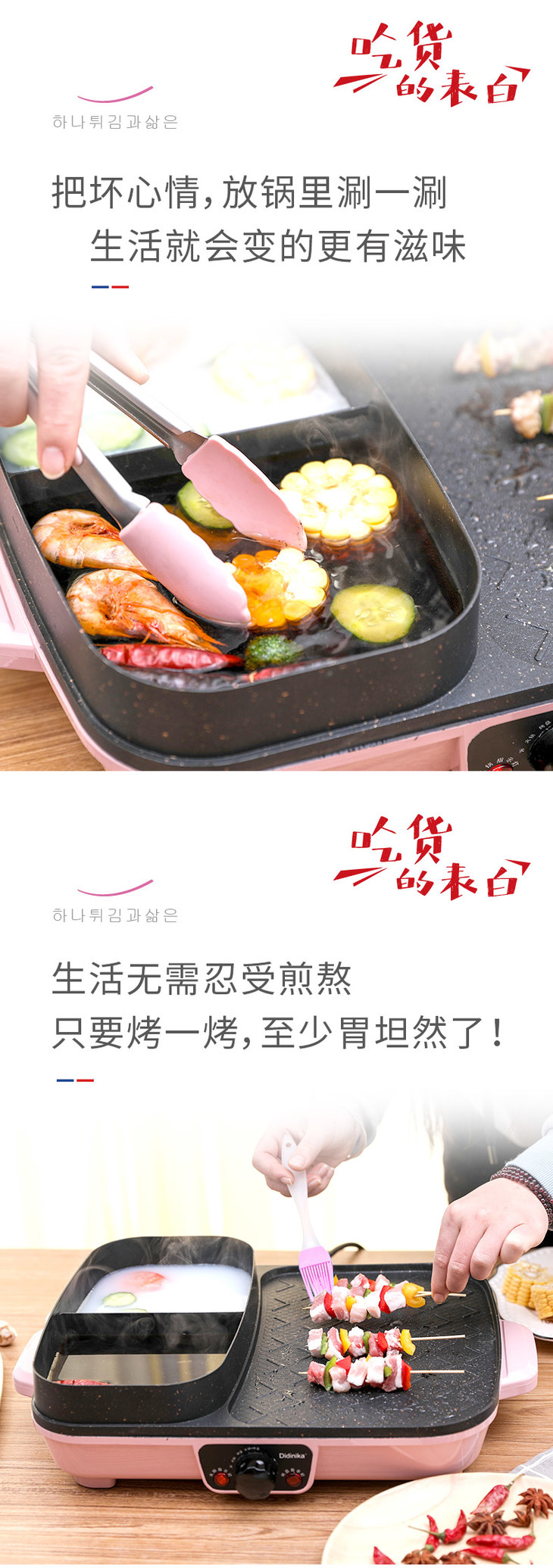 迪迪尼卡didinika麦饭石鸳鸯烧烤涮一体锅