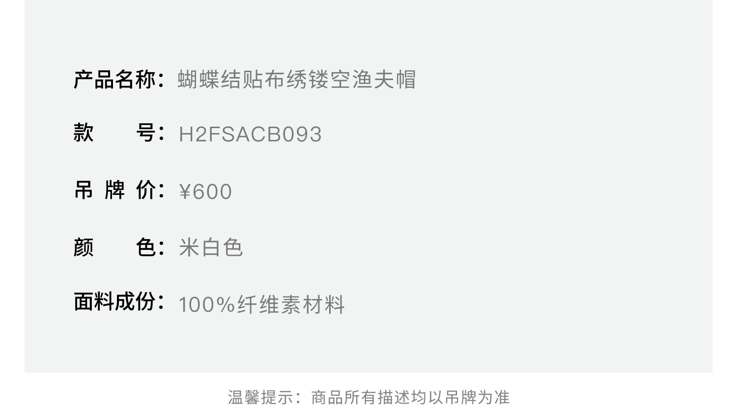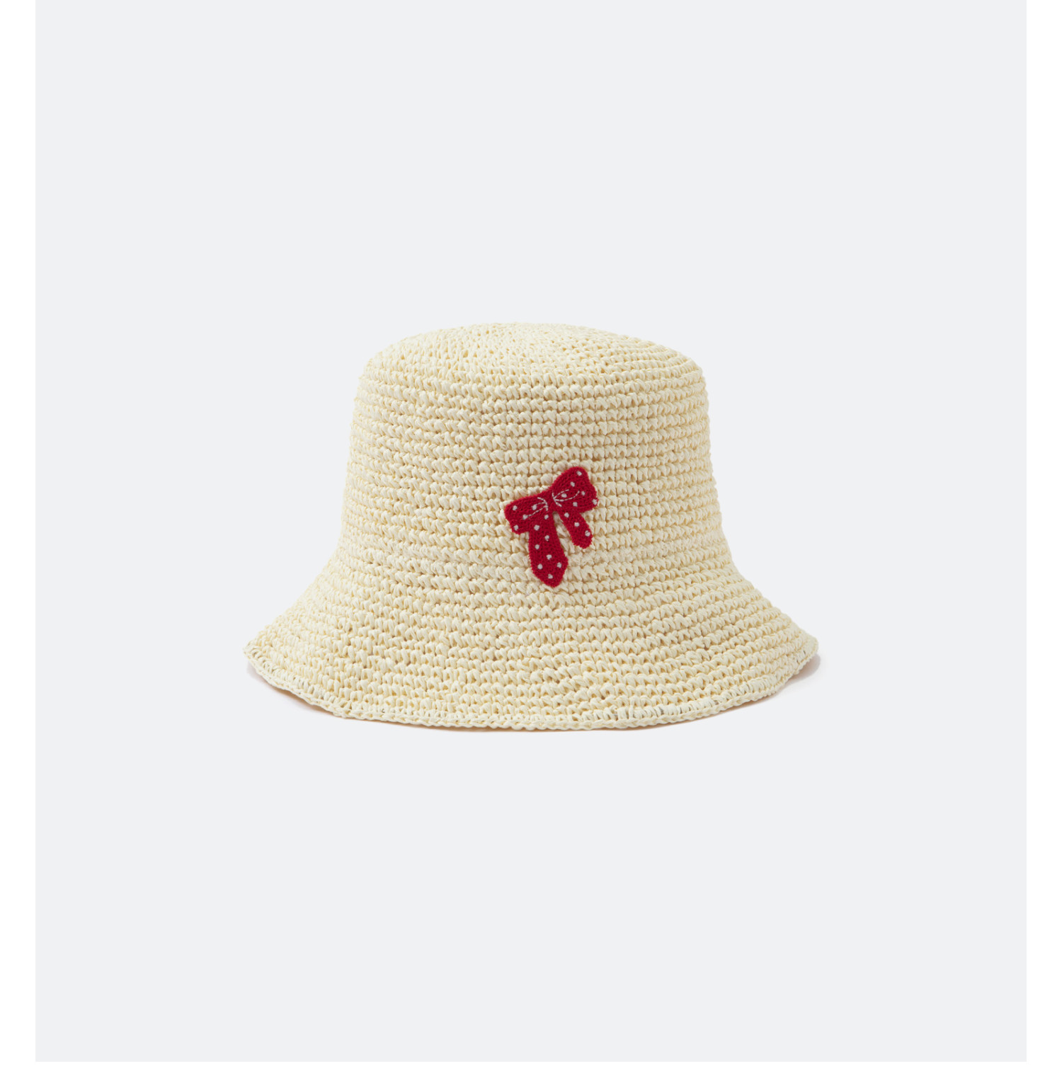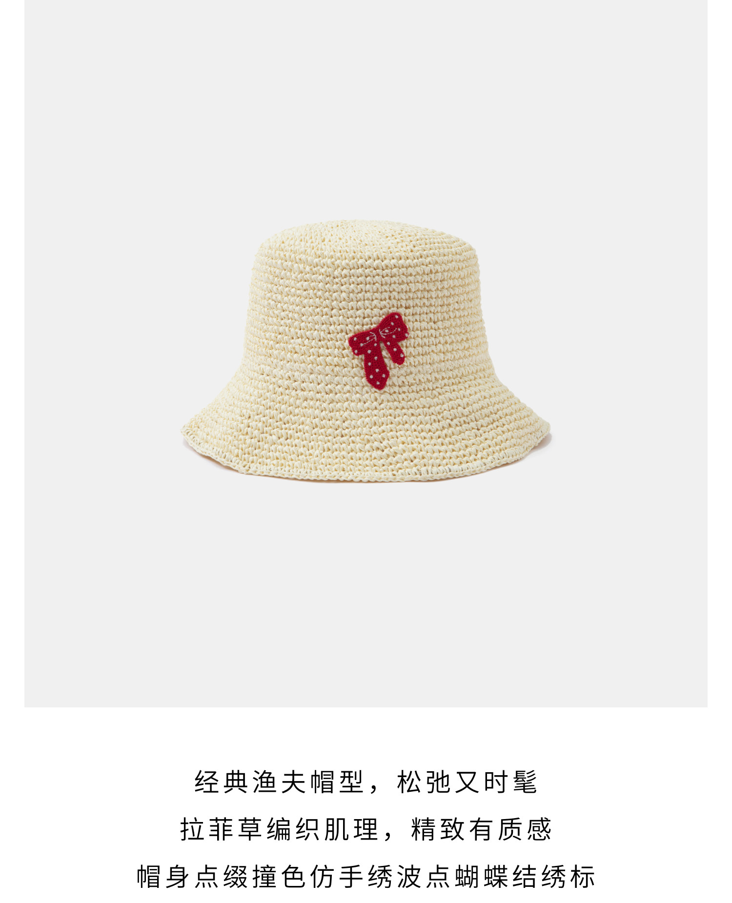 HERLIAN 2026年春季新品蝴蝶结贴布绣镂空女士编制渔夫帽