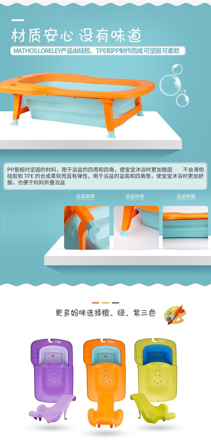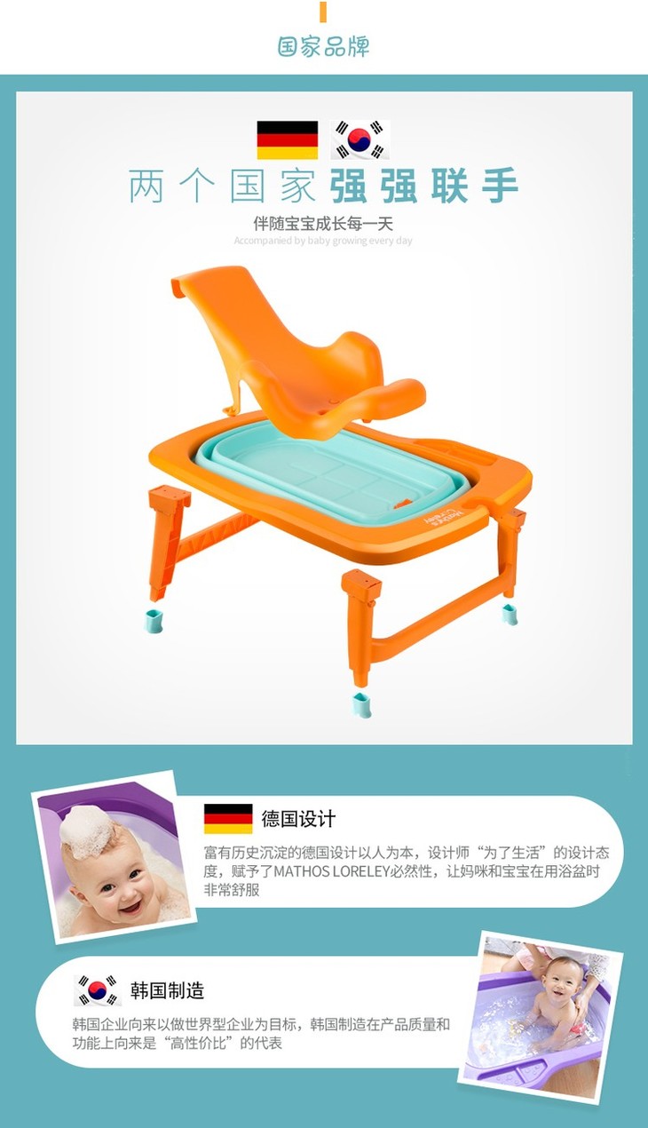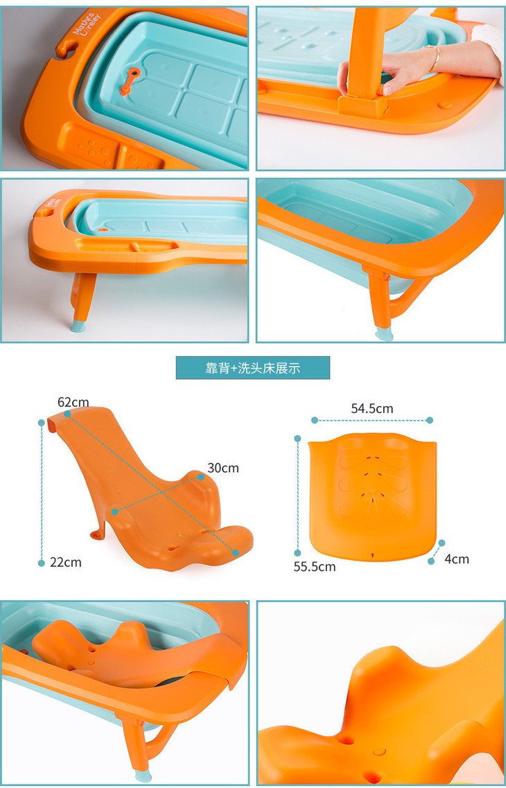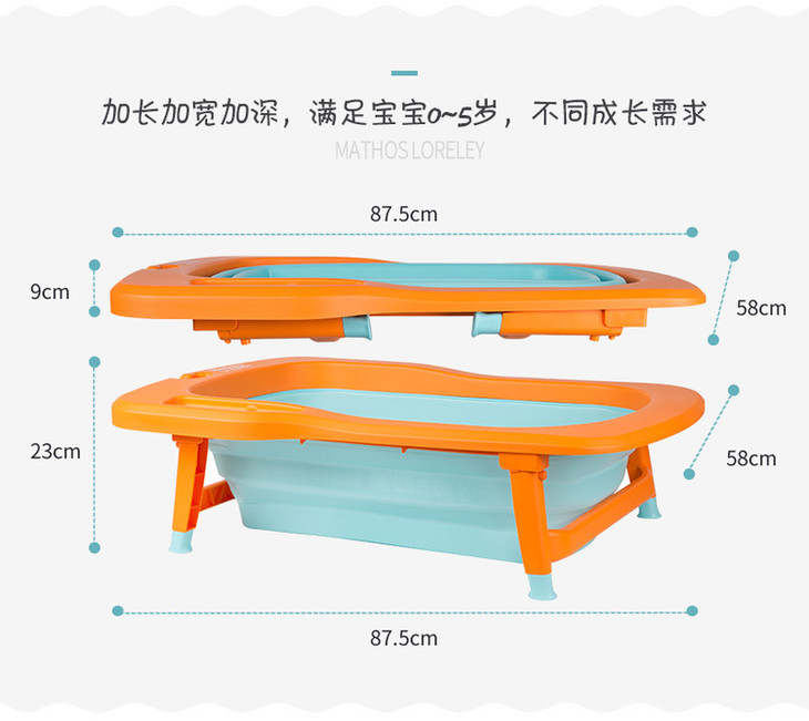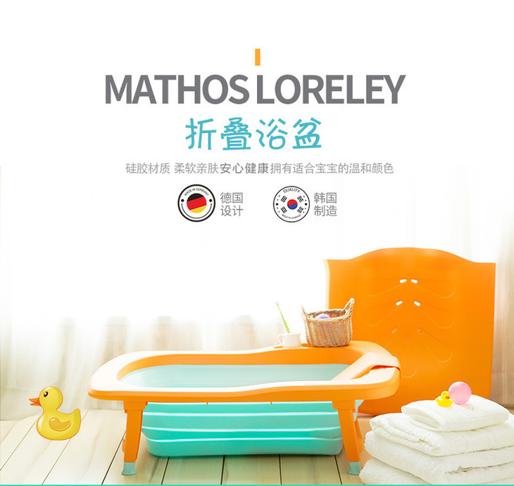 【一般贸易】韩国原产Mathos Loreley婴儿浴盆澡盆便携感温可折叠浴盆 橙色 展开前:87.5*58*9cm,展开后:87.5*58*23cm