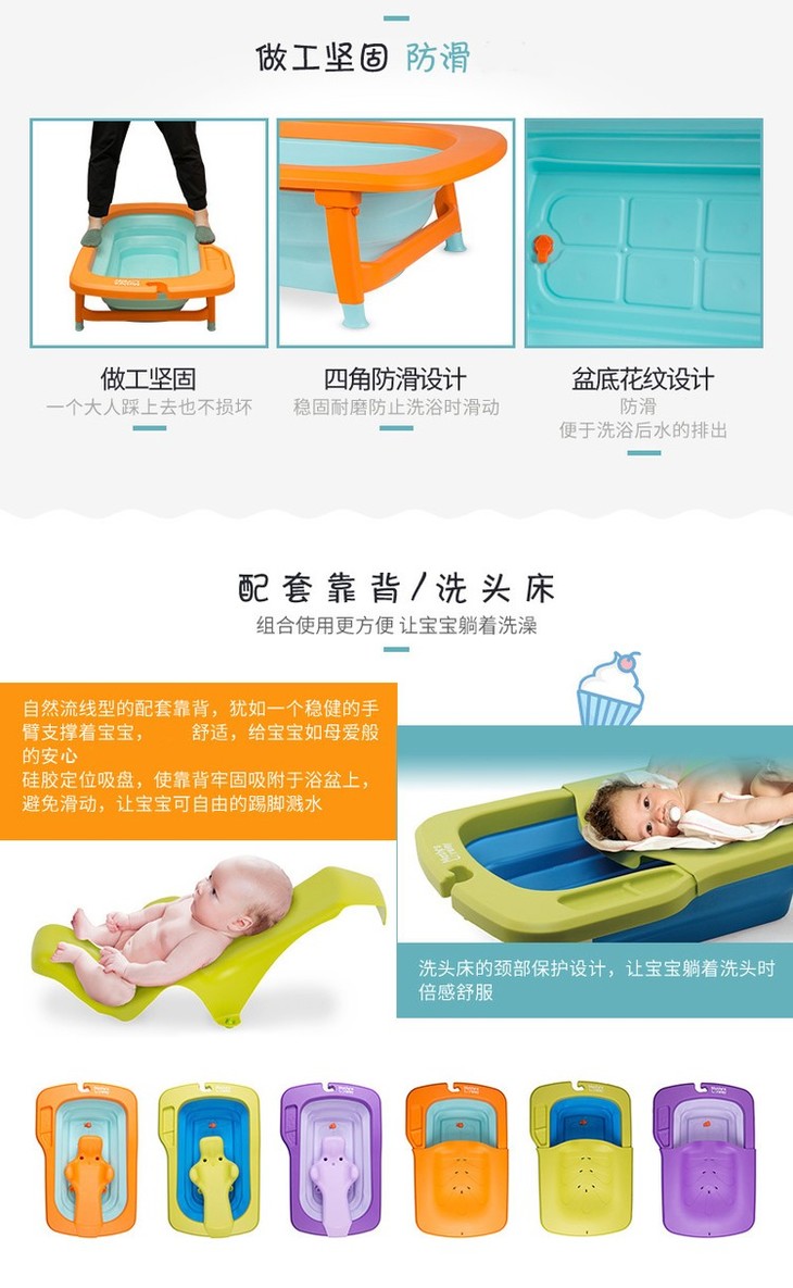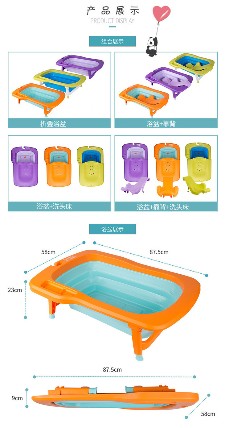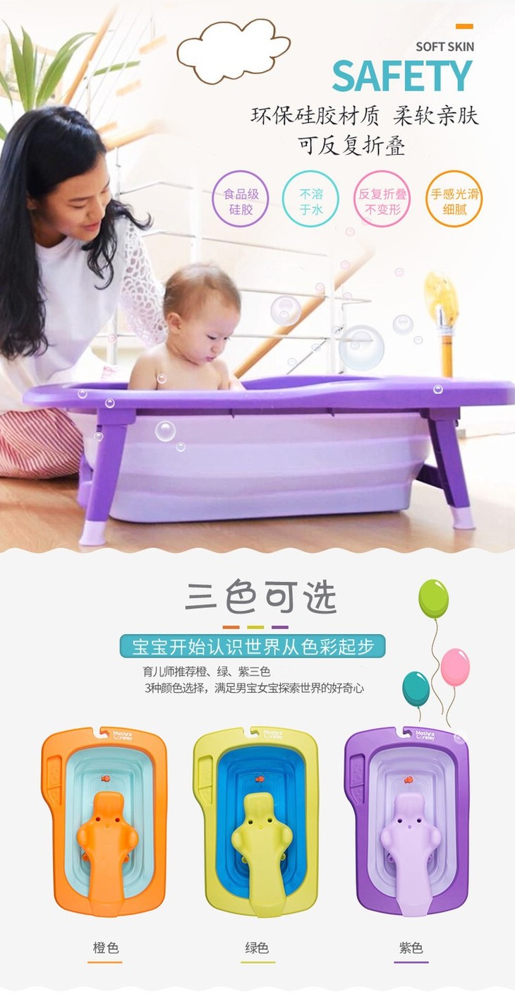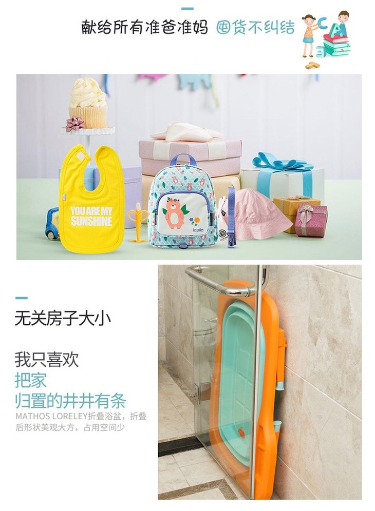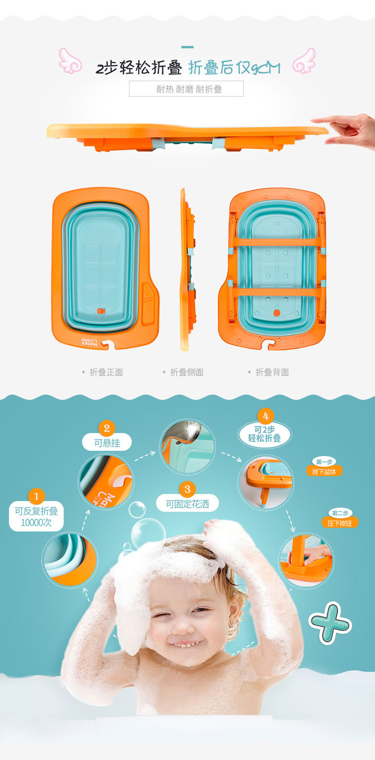 【一般贸易】韩国原产Mathos Loreley婴儿浴盆澡盆便携感温可折叠浴盆 橙色 展开前:87.5*58*9cm,展开后:87.5*58*23cm